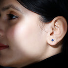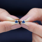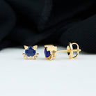 4 MM Round Blue Sapphire Solitaire Cat Stud Earrings in Prong Setting