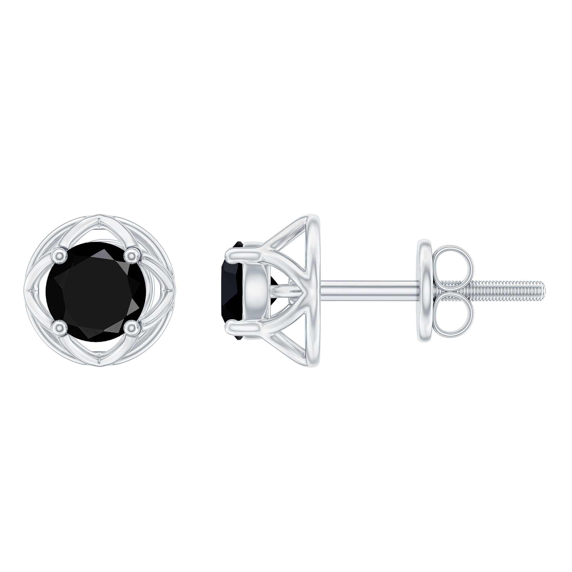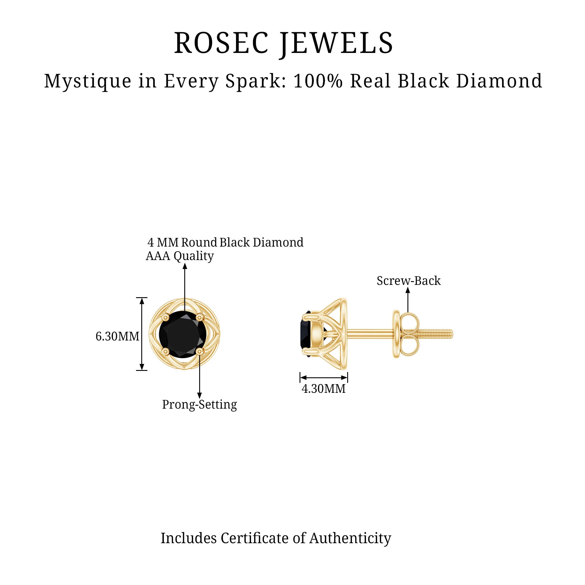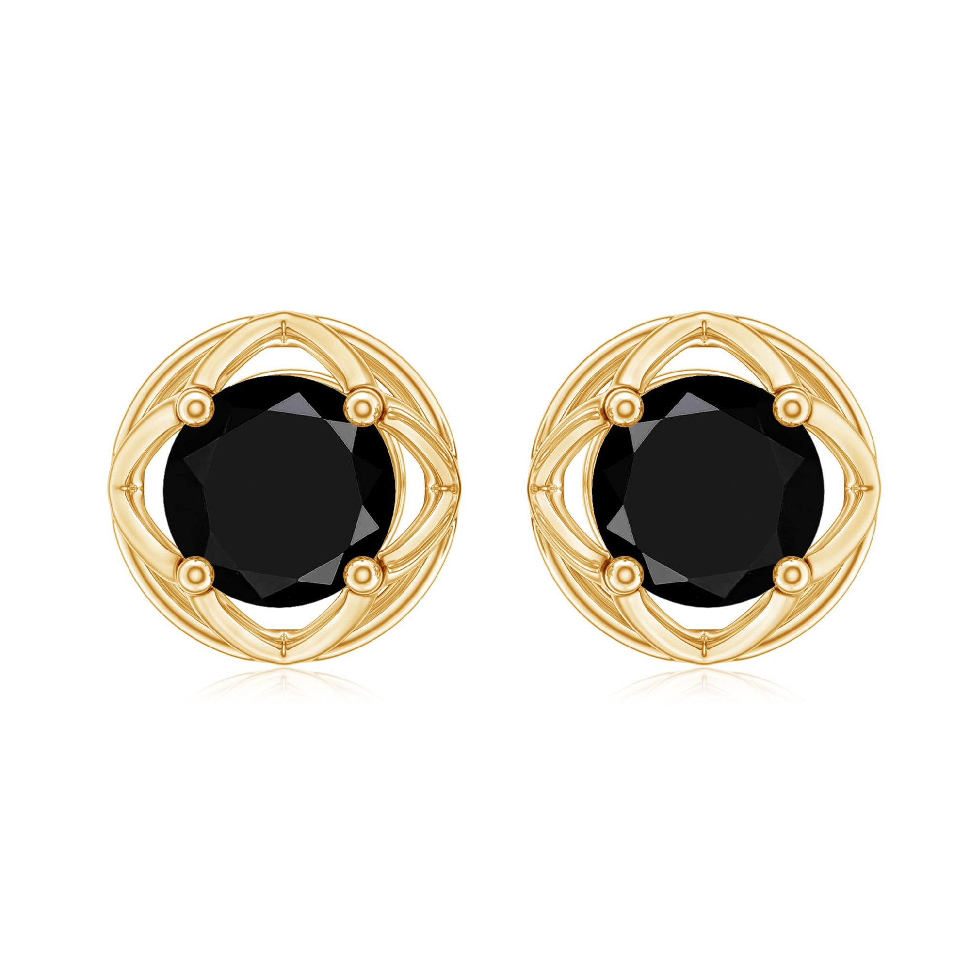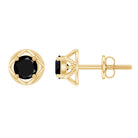 Presenting the Alluring Jewelry Piece for your loved one. The Screw Back finding stud earrings are embellished with 1/2 CT Round Cut Black Diamond in Prong Setting studded as a center stone of Earring. Solid Gold crafted Floral encasing around the center stone make this pair of earring more Adorable.