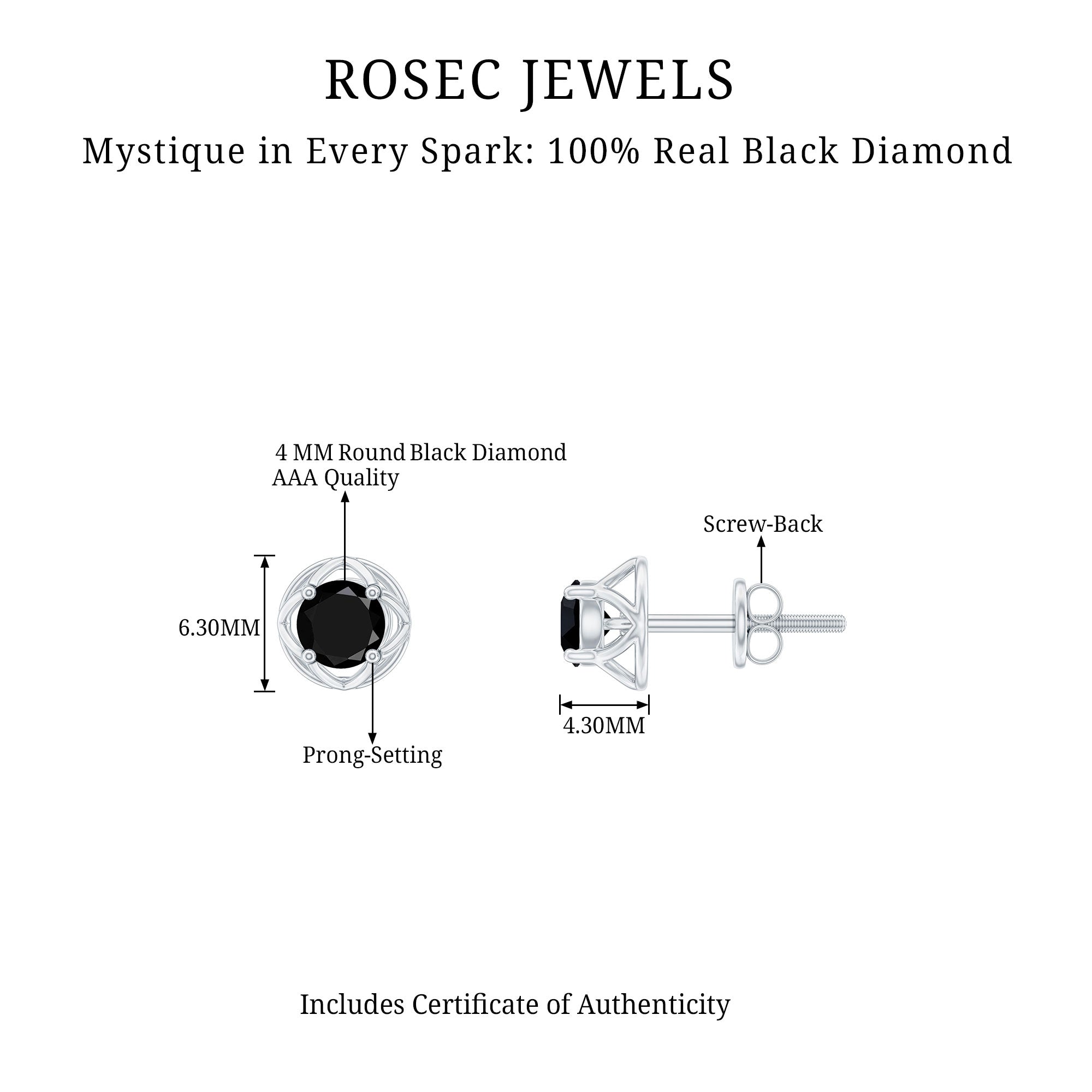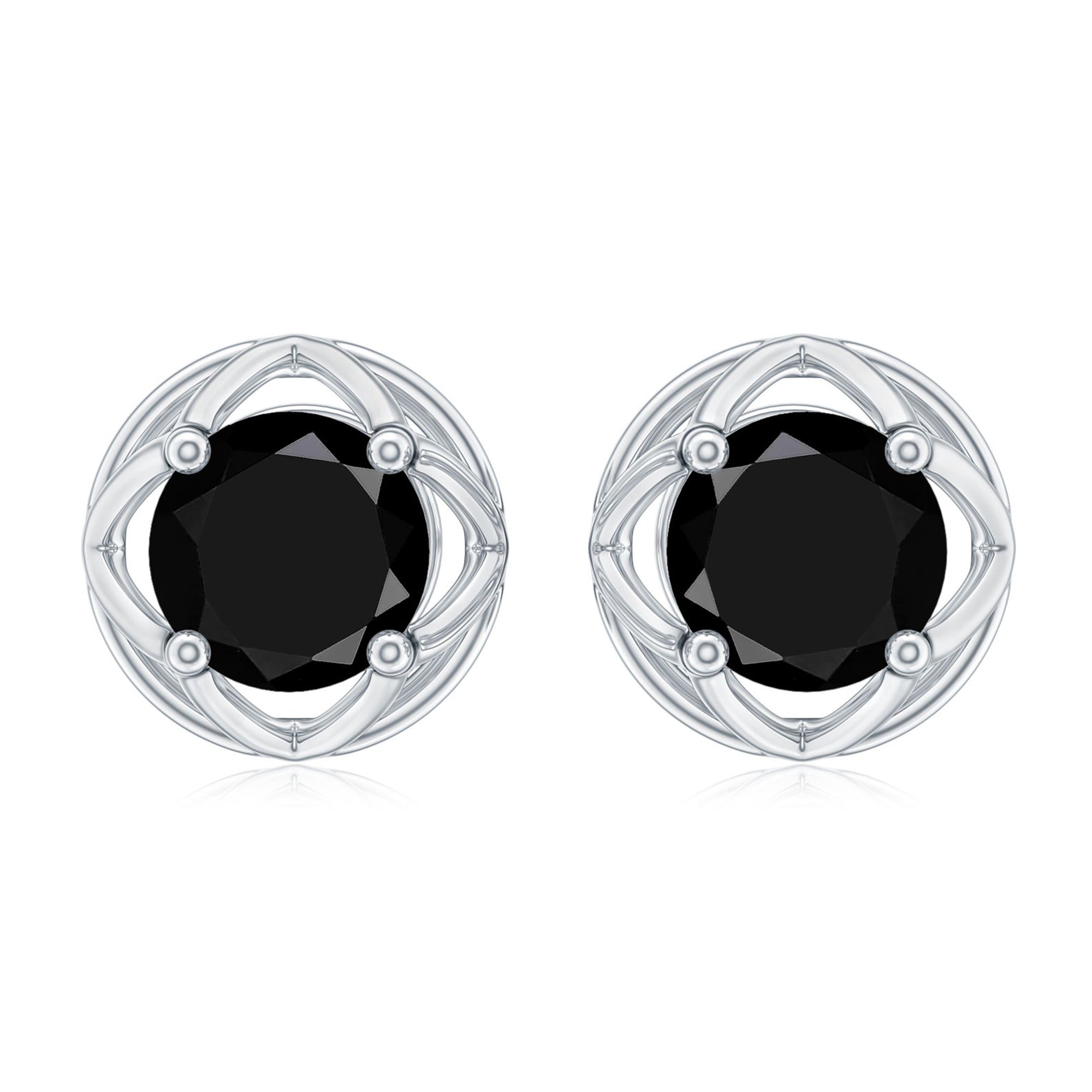 4 MM Round Cut Black Diamond Solitaire Floral Stud Earring