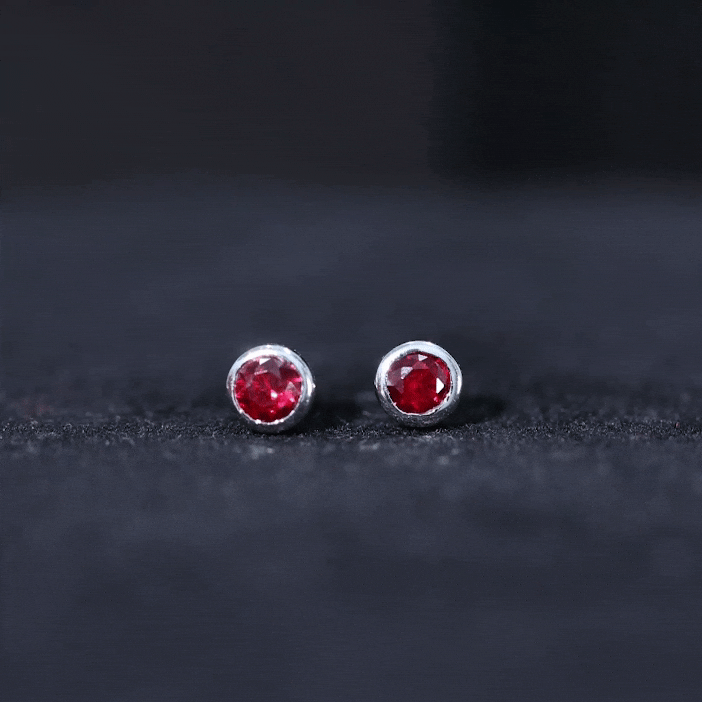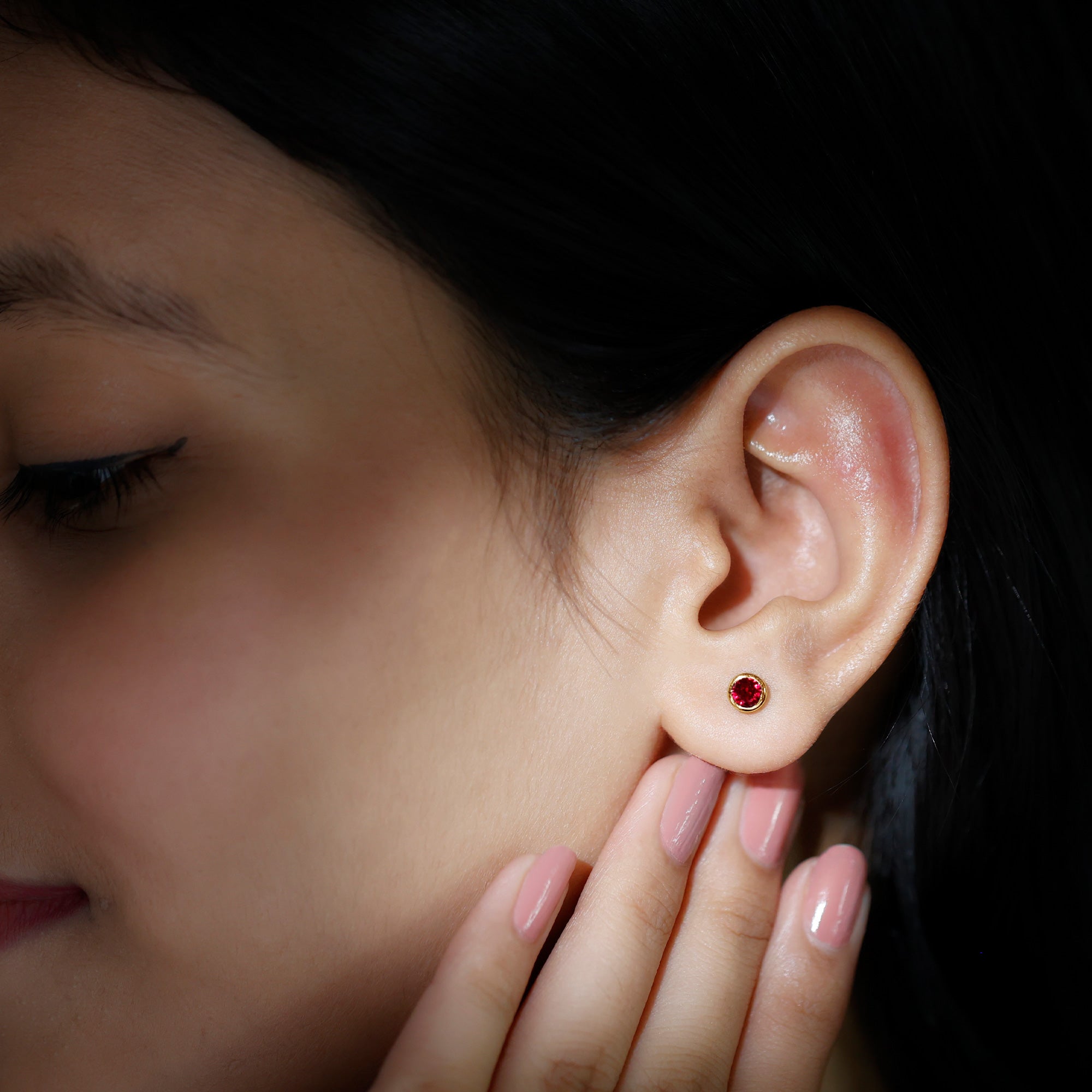 These simple yet classic Stud Earrings are designed with Round Shape Created Ruby in Bezel Setting. The earrings are crafted with Solid Metal to create an opulent appeal.