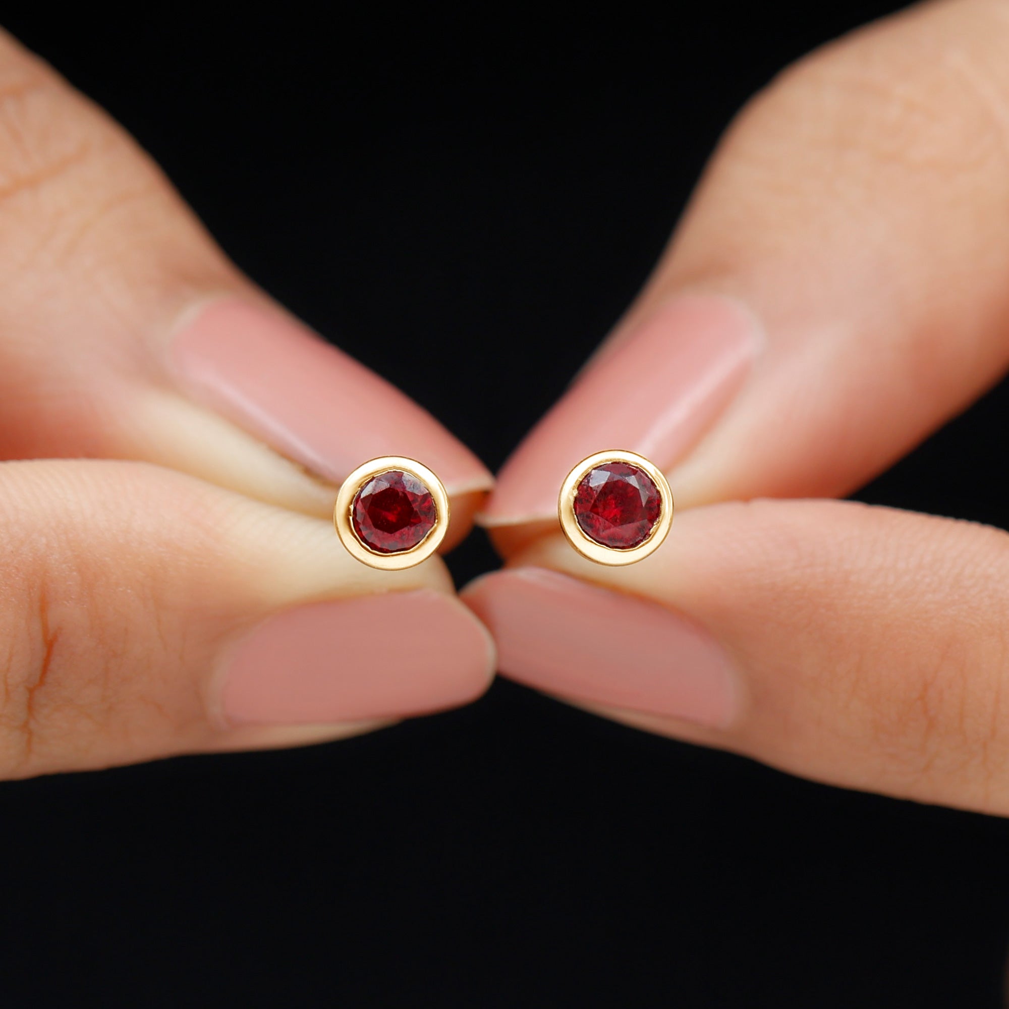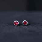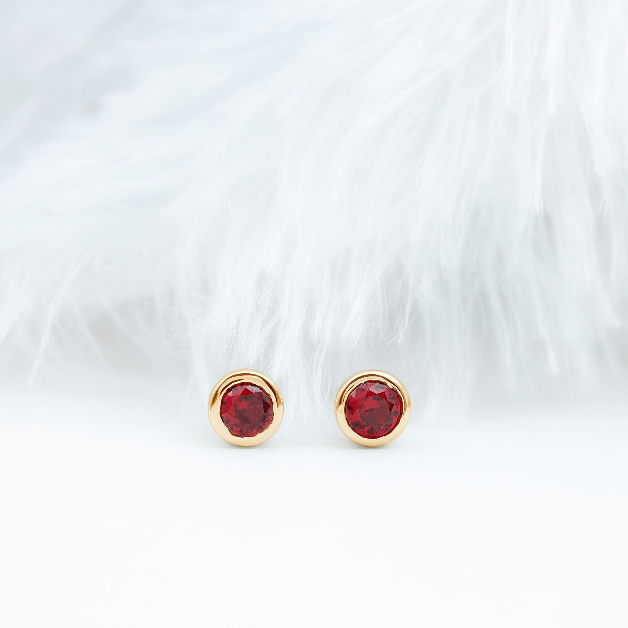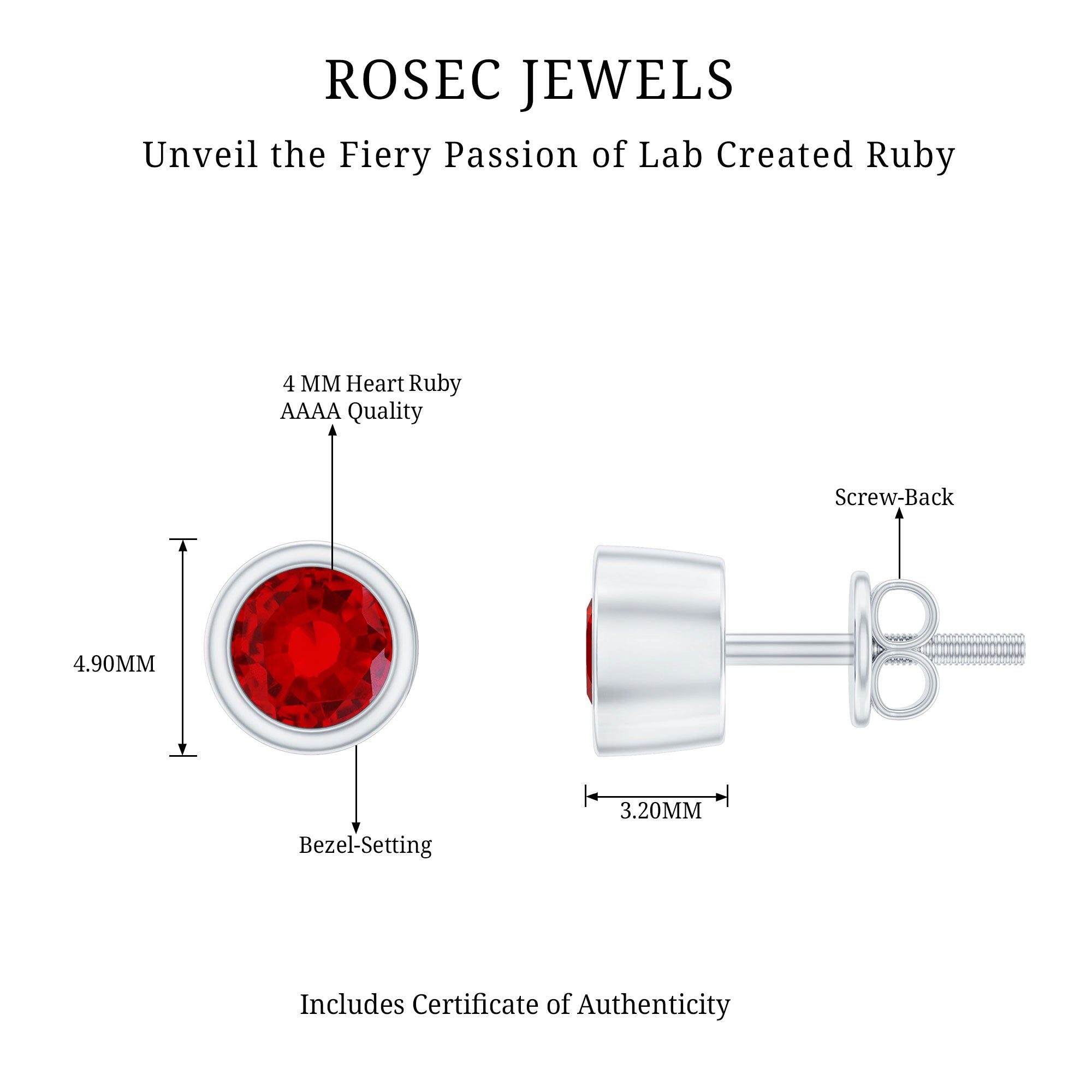 Round Shape lab Grown Ruby Solitaire Stud Earrings in Bezel Setting