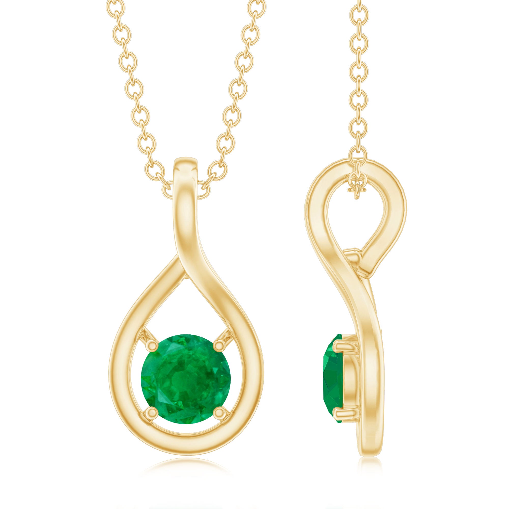 4 MM Round Cut Emerald Solitaire Gold Teardrop Pendant