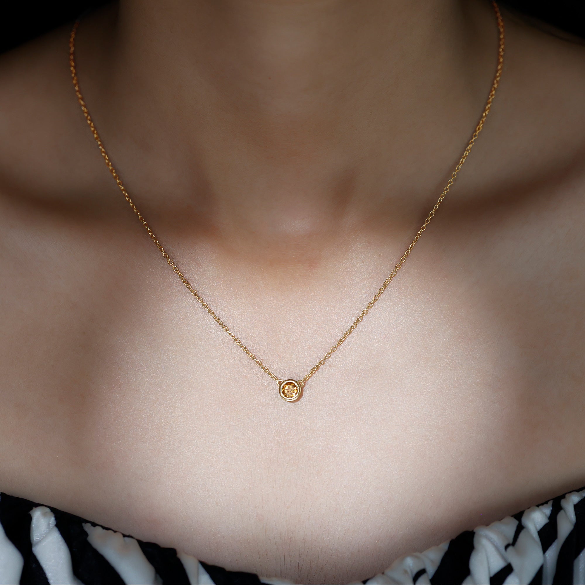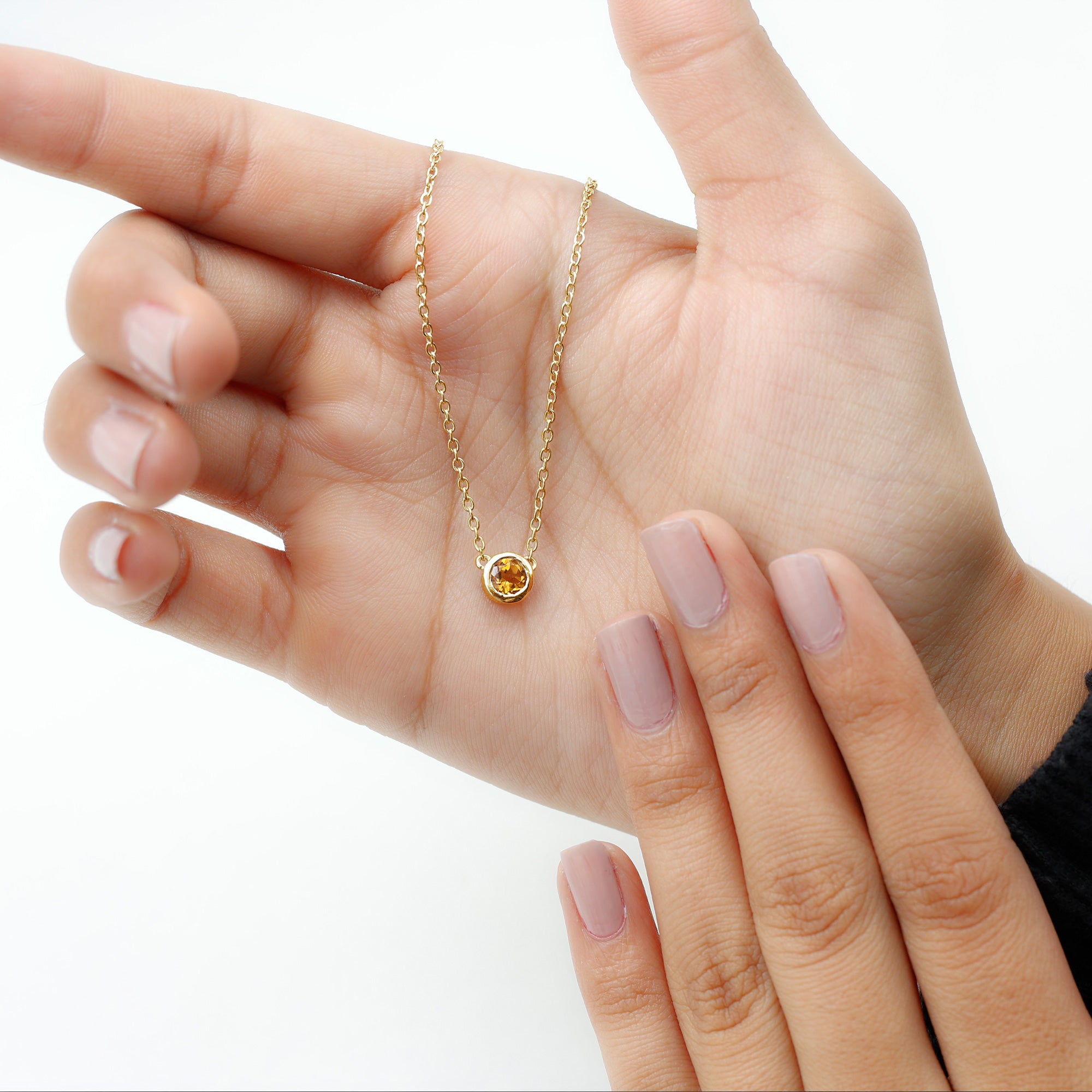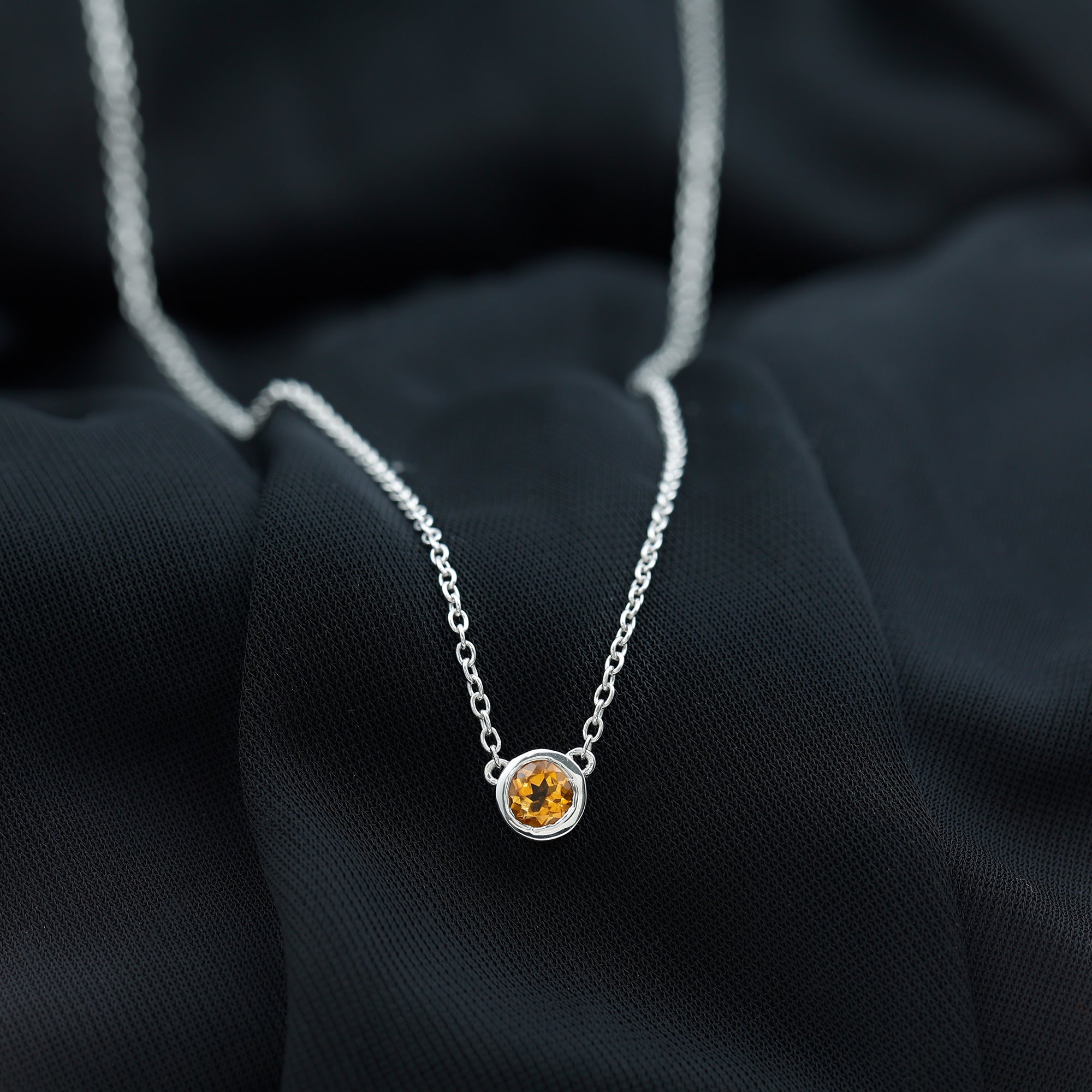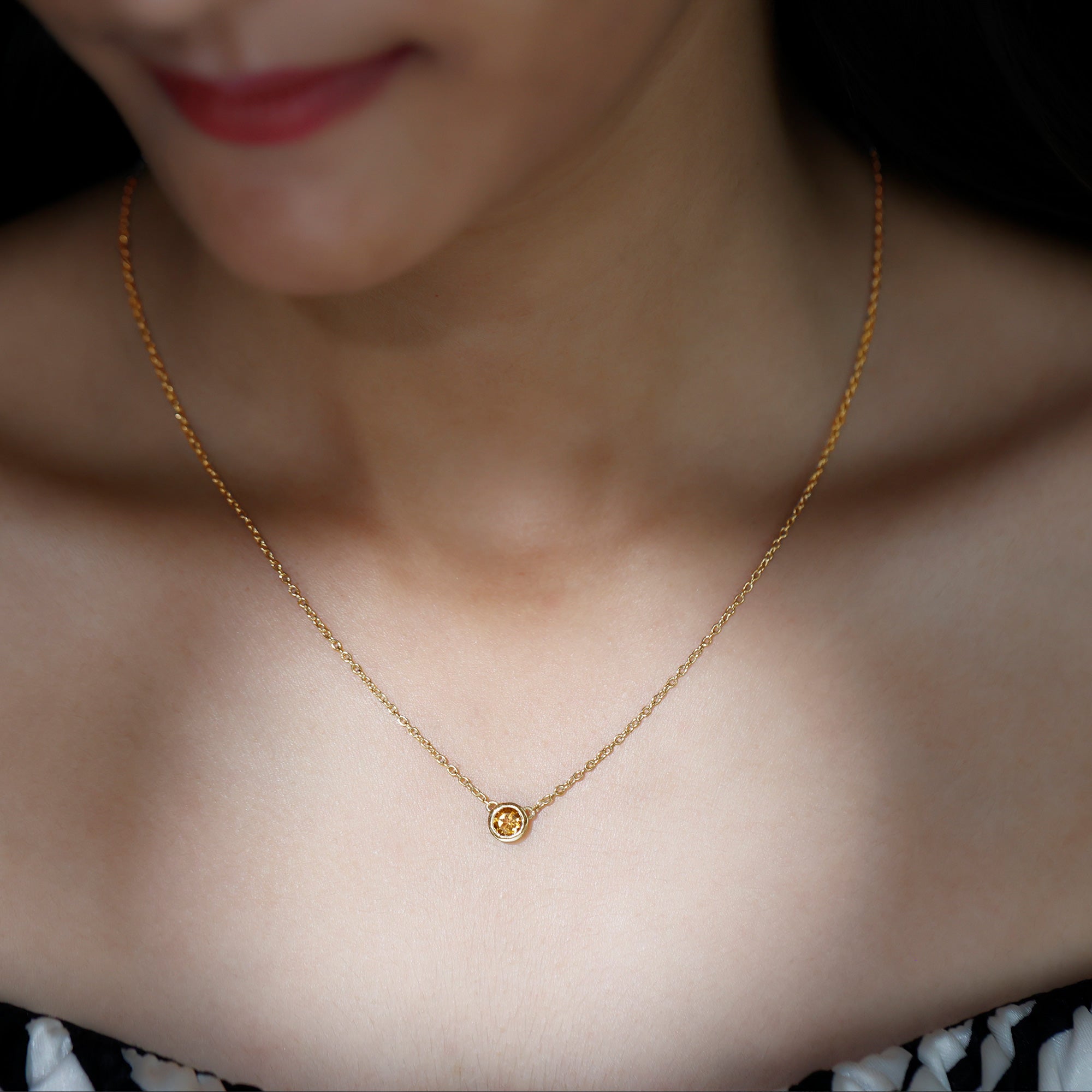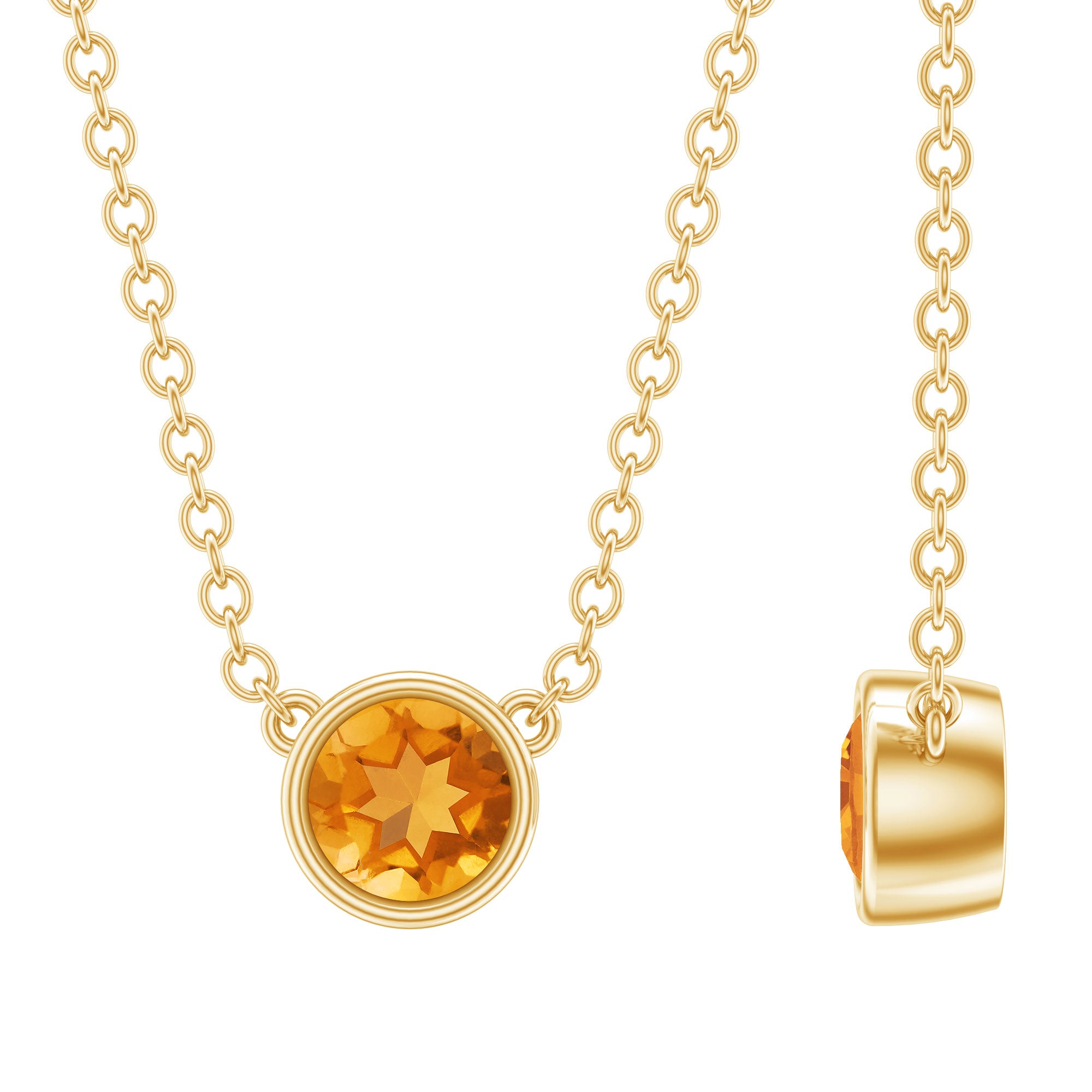 Round Shape Citrine Solitaire Necklace in Bezel Setting