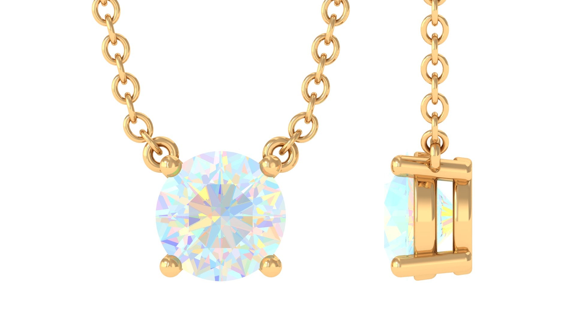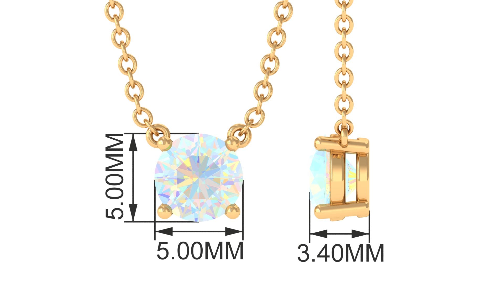 Complete your look with this stunning gold necklace, featuring a 5 MM round-shaped Ethiopian opal in a beautiful Prong setting. This opal solitaire necklace is a perfect accessory for any woman.