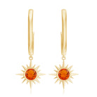 Certified Real Fire Opal Sunburst Drop Hoop Earrings