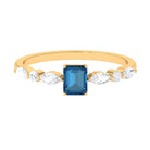 Allow your affection to radiate through the elegance of refined design with this delightful London Blue Topaz Solitaire Ring. At the heart of this significant piece lies a 4X6 MM Emerald cut London Blue Topaz of AAA quality. Securely set in a designer setting, the london blue topaz draws attention while maintaining an understated and sophisticated style. The band features intricate details adorned with sparkling round and marquise cut diamonds, each chosen for their HI-SI quality, providing a subtle brilliance that enhances the striking center stone. The combination of blue topaz and luminous diamonds imparts a contemporary and graceful appearance to the Promise Engagement Ring, making it suitable for everyday wear. Believed to offer strength and protection, this Blue Topaz and Diamond Ring serves as a meaningful gift for your beloved. Whether intended for a promise, a birthday, or simply to express affection, this London Blue Topaz Ring conveys a clear message: your connection is robust and enduring. Lightweight, resilient, and meticulously crafted, this December Birthstone Ring ensures lasting comfort and style. It arrives beautifully presented in an elegant jewelry box and is available in US sizes ranging from 3 to 13. Romantic, sophisticated, and full of charm, this Commitment Ring narrates a love story that encircles your hand.