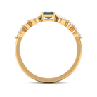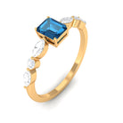 4X6mm Emerald Cut London Blue Topaz Solitaire Ring with Diamond