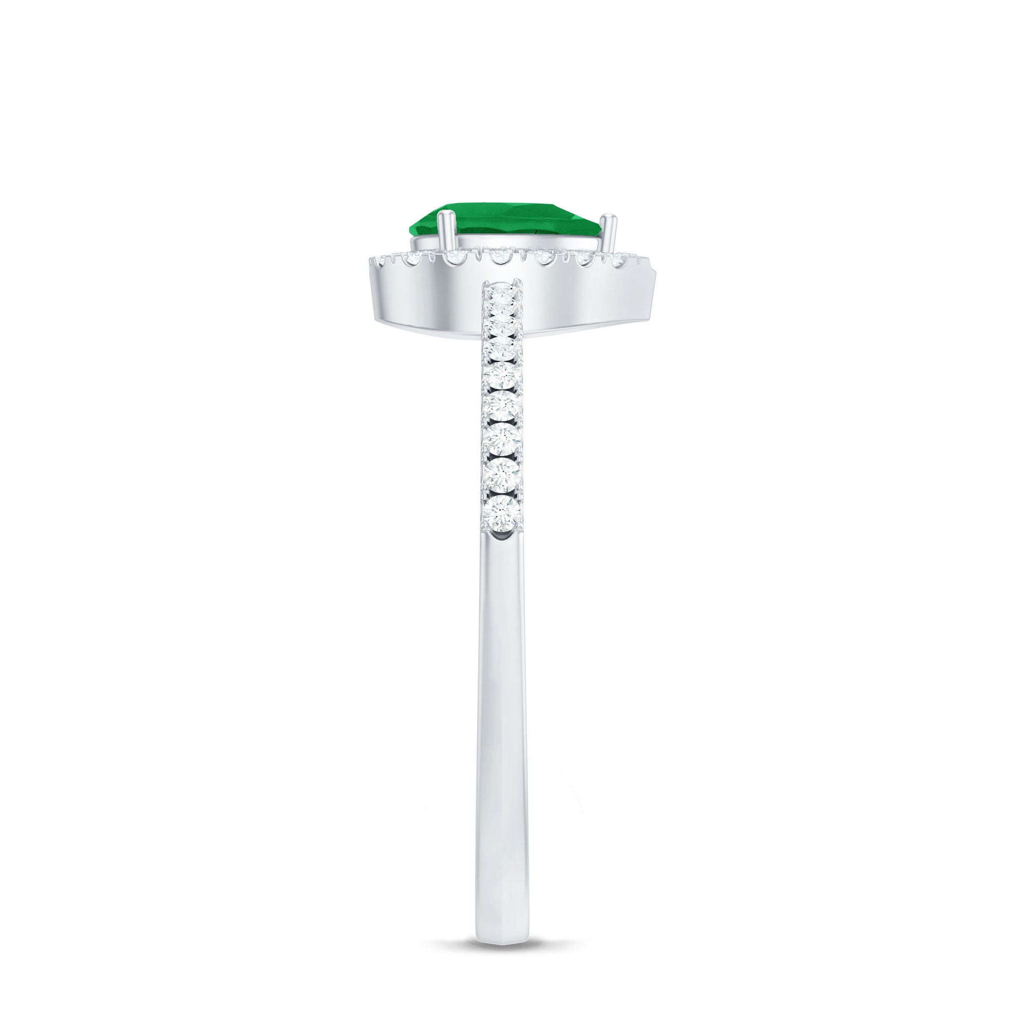 4X6mm Pear Cut Emerald Teardrop Engagement Ring with Diamond Halo