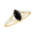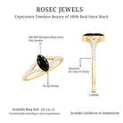 This gorgeous Marquise Engagement Ring is a fantastic way to express love to your lady. At its heart is a 4X8 MM Marquise cut Black Onyx held in prong setting. The Split Shank Engagement Ring showcases a split shank band, adorned with round cut Diamond stones. Crafted with meticulous attention, this Black Onyx Engagement Ring boasts a designer vibe and sophisticated details, ideal for anyone seeking something distinctive and eye-catching. Whether you are popping the question or marking a special occasion, this Split Shank Ring is designed to shine and be cherished for a lifetime. It provides exceptional brilliance, durability, and timeless elegance without breaking the bank. The Marquise Cut Onyx Ring arrives in a lovely jewelry box, perfect for gifting. Plus, you will get a certificate of authenticity for the stone, ensuring you feel good about your purchase. This stylish and budget-friendly engagement ring is made to dazzle in every way, just like your love.