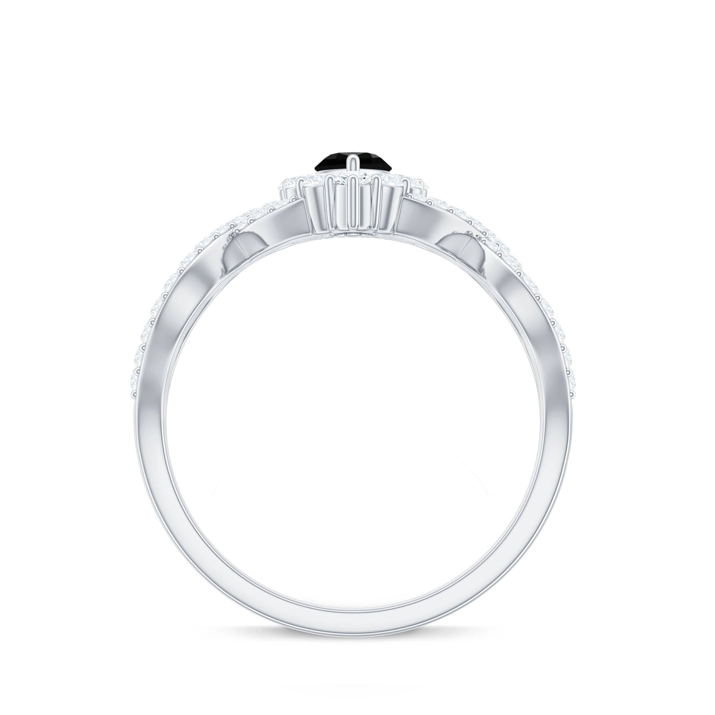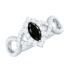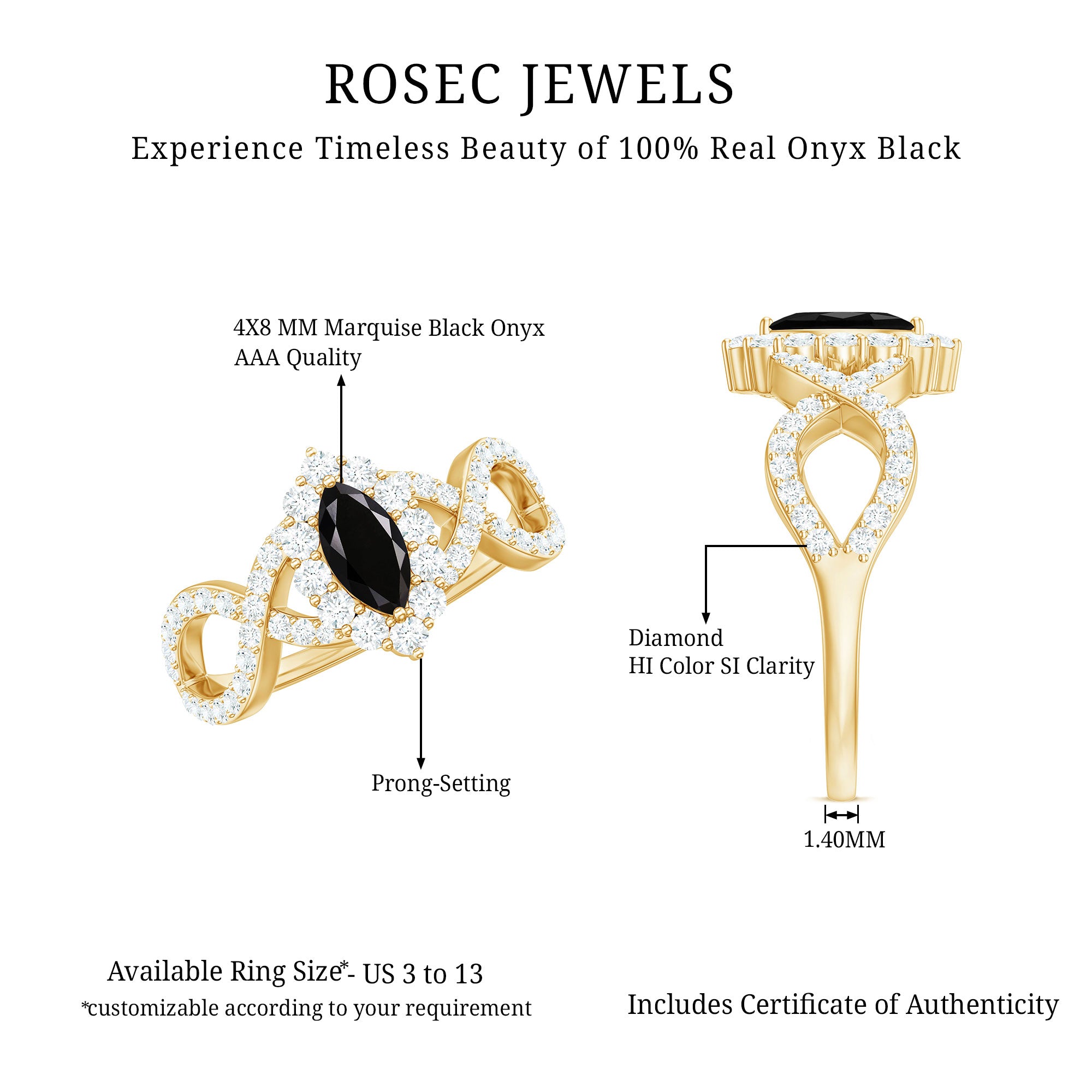 4x8mm Marquise Cut Black Onyx Statement Engagement Ring with Diamond Halo