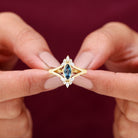 4X8mm Marquise Cut London Blue Topaz Cocktail Ring with Diamond