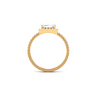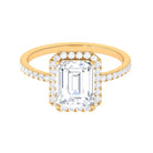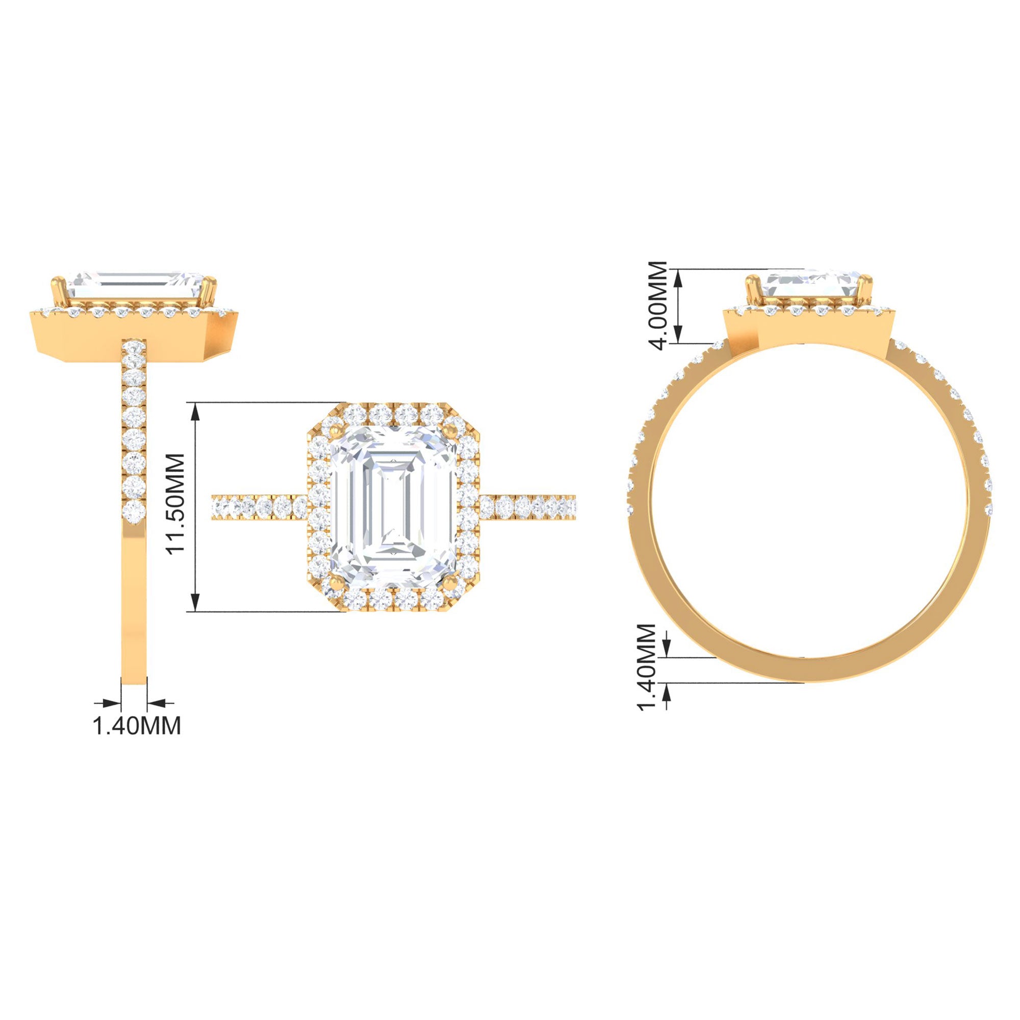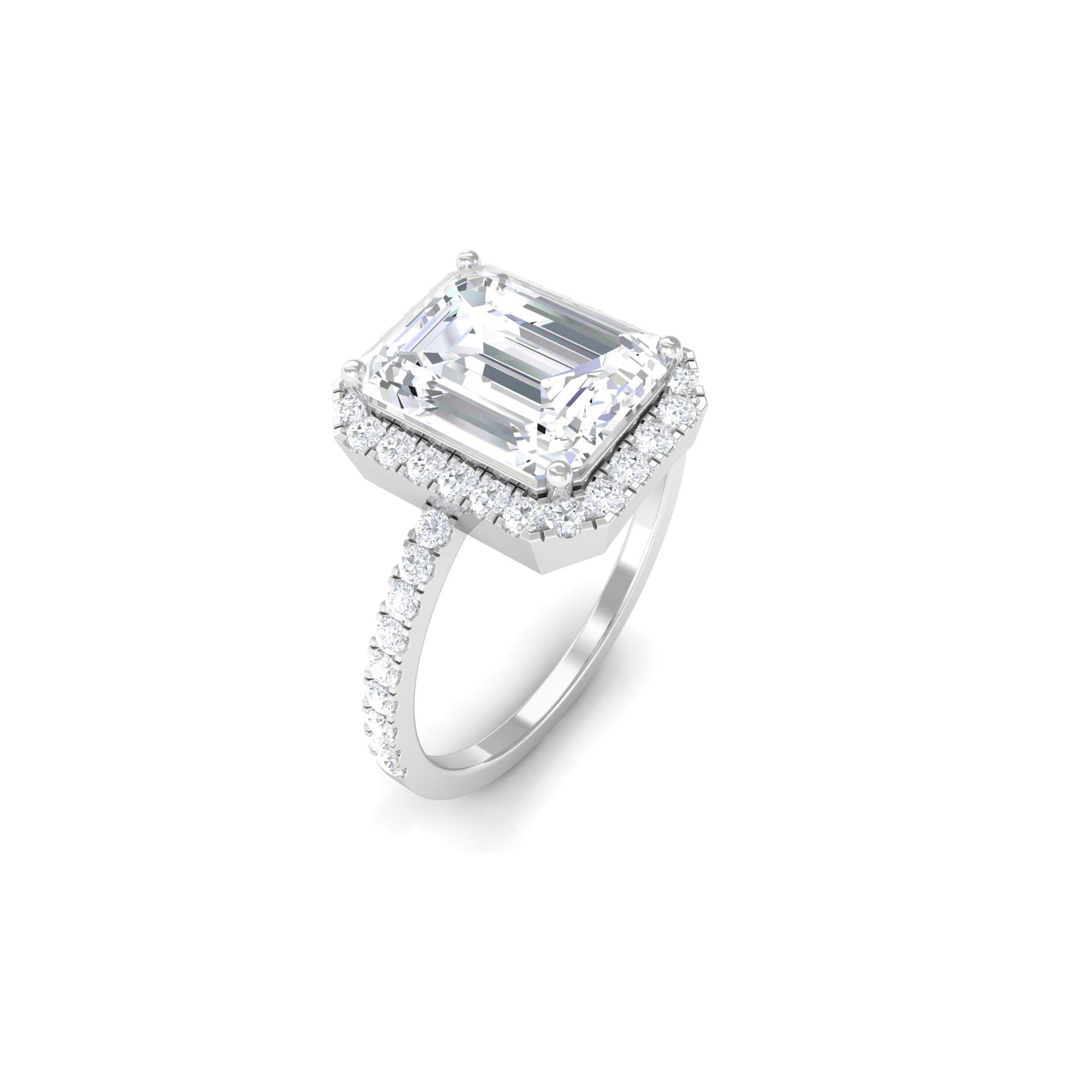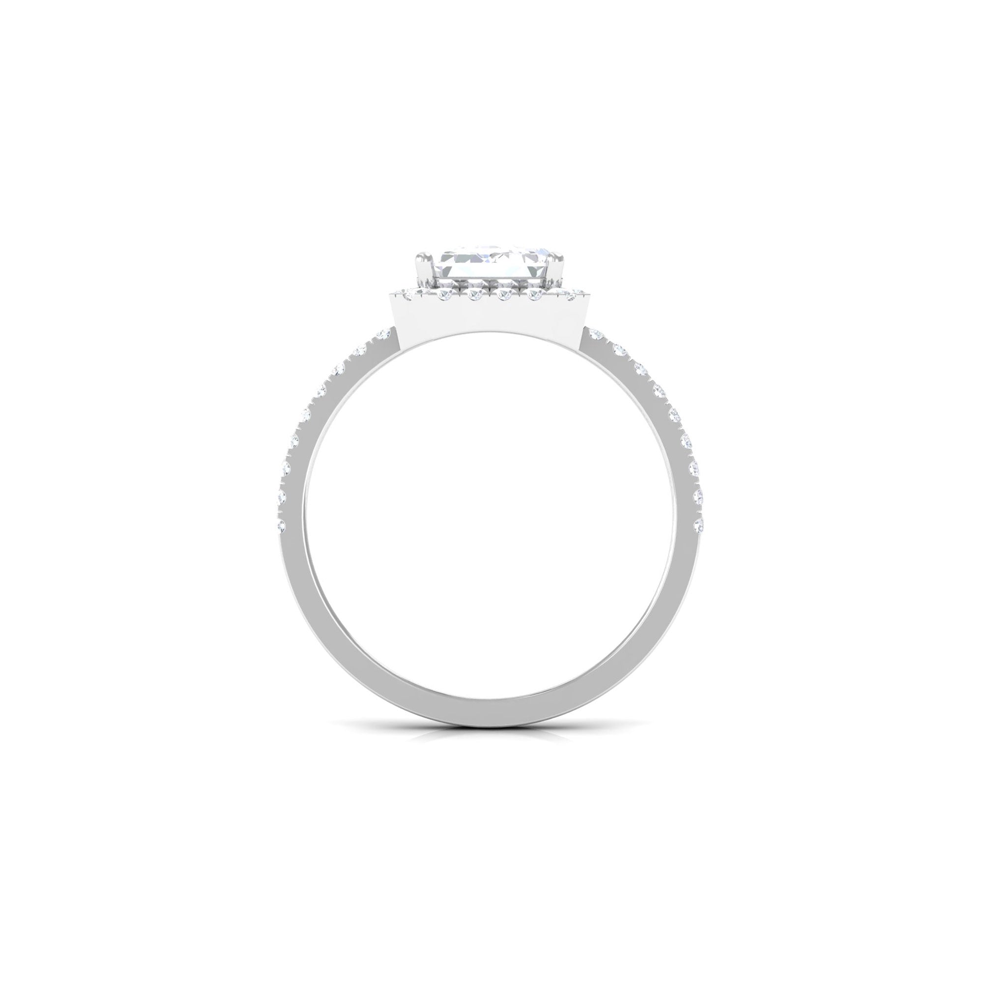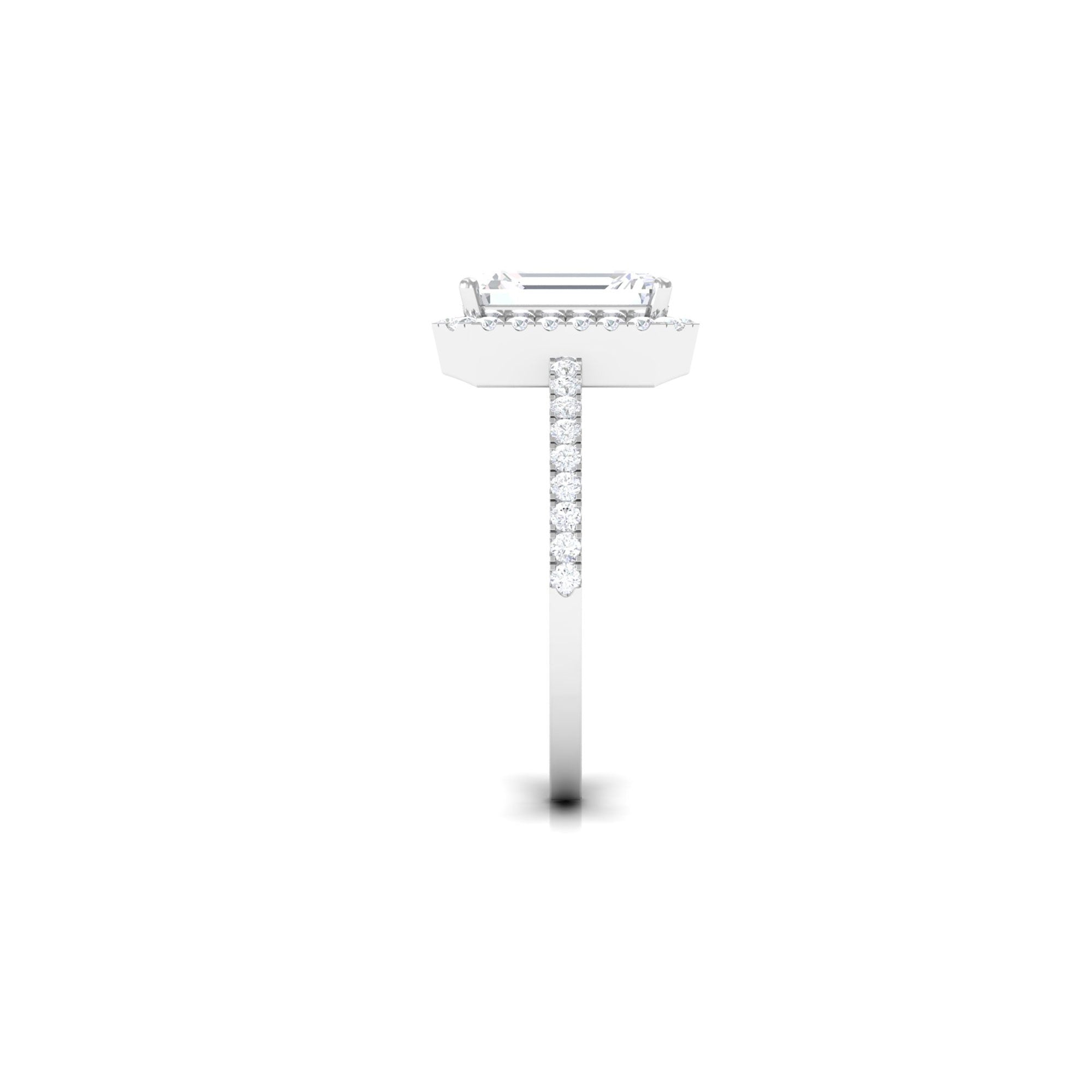 Elegant and Glamours. As the idealist type to enhance her incredible charm, this Halo Engagement Ring is an appropriate option to accentuate the dazzling glamour of the emerald cut center stone. Adorned with the shimmering Zircon in Prong Setting, this Cubic Zirconia Ring will make a striking impression on your perfect engagement.