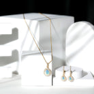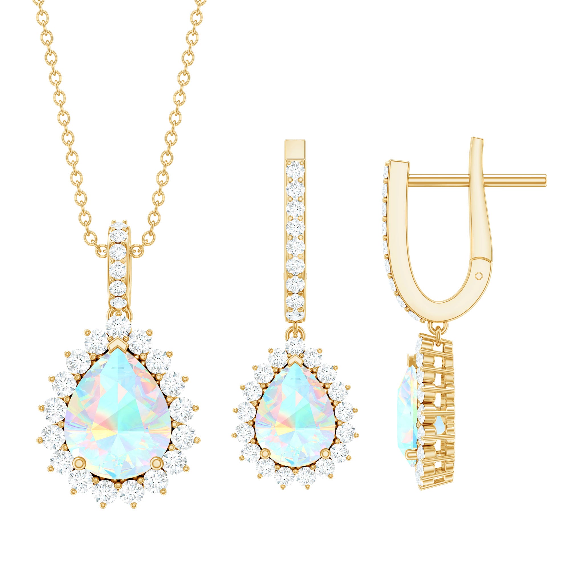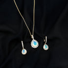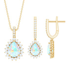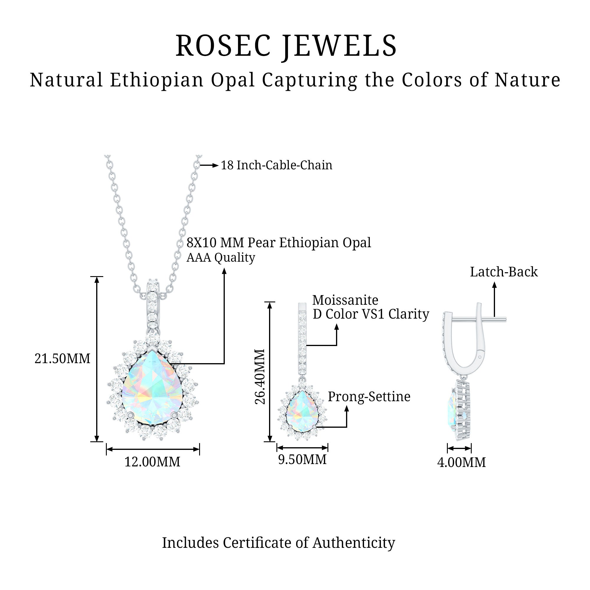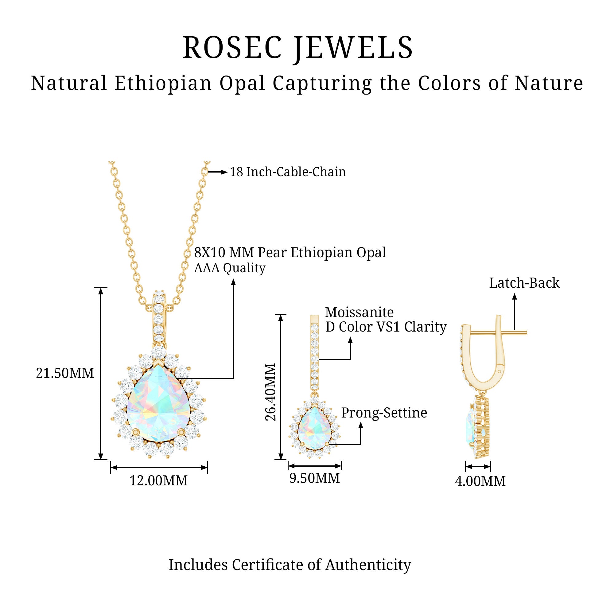 Complete your outfit with this elegantly designed Teardrop Jewelry Set. This Teardrop Earrings and Necklace Set is adorned with Pear Cut Ethiopian Opal set as a Solitaire and round shape Moissanite Accent to make for a lovely choice for different occasions.
