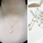 Make a statement and feel like royalty with this stunning Freshwater Pearl Necklace. The necklace is adorned with a lustrous Drop-shaped Freshwater Pearl, hanging from a gold bar adorned with sparkling Diamond stones. This necklace, featuring the June birthstone, is the perfect accessory for special occasions or to add a touch of sophistication to your everyday style. The Freshwater Pearl exudes elegance and the Diamond-adorned gold bar adds a touch of glamour, making this necklace a standout piece in any jewelry collection. Adorn yourself with the Queen of Gems and feel like a queen yourself with this exquisite Freshwater Pearl Necklace.