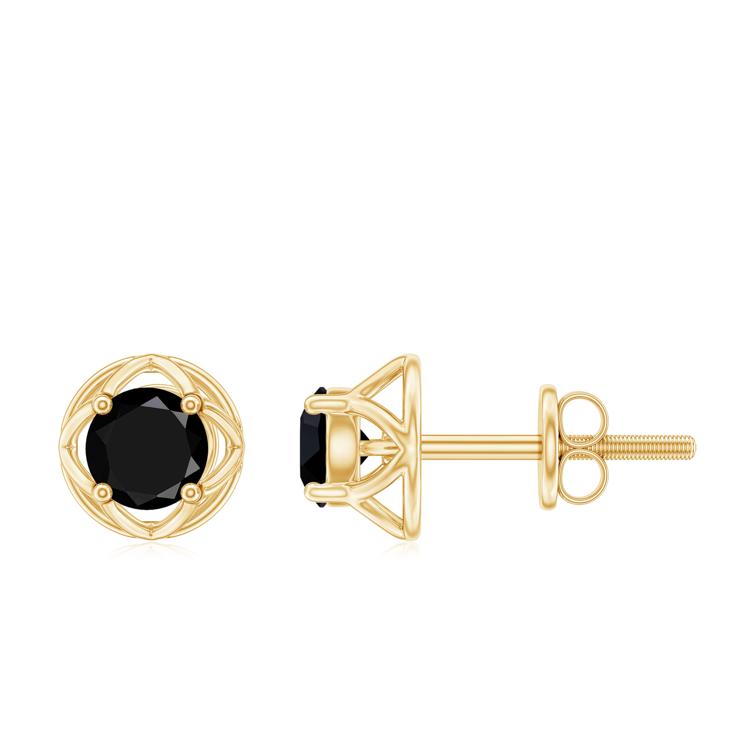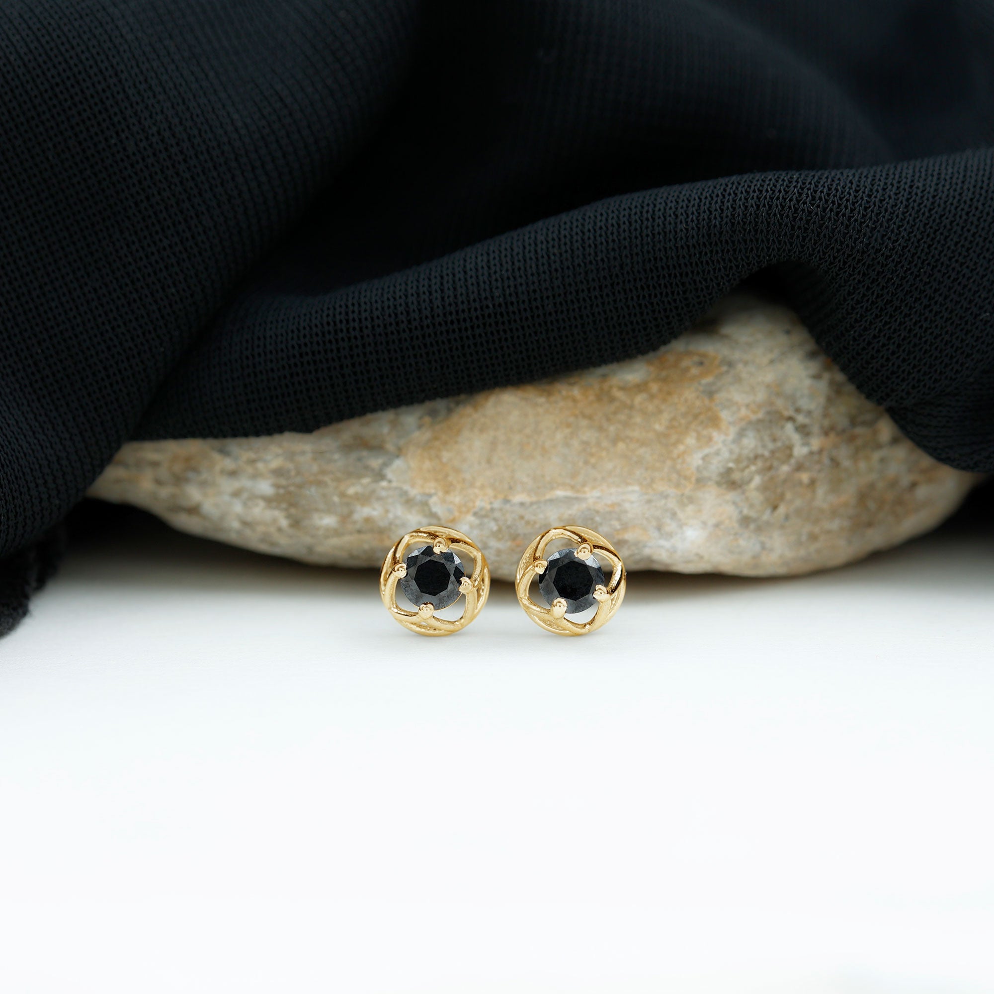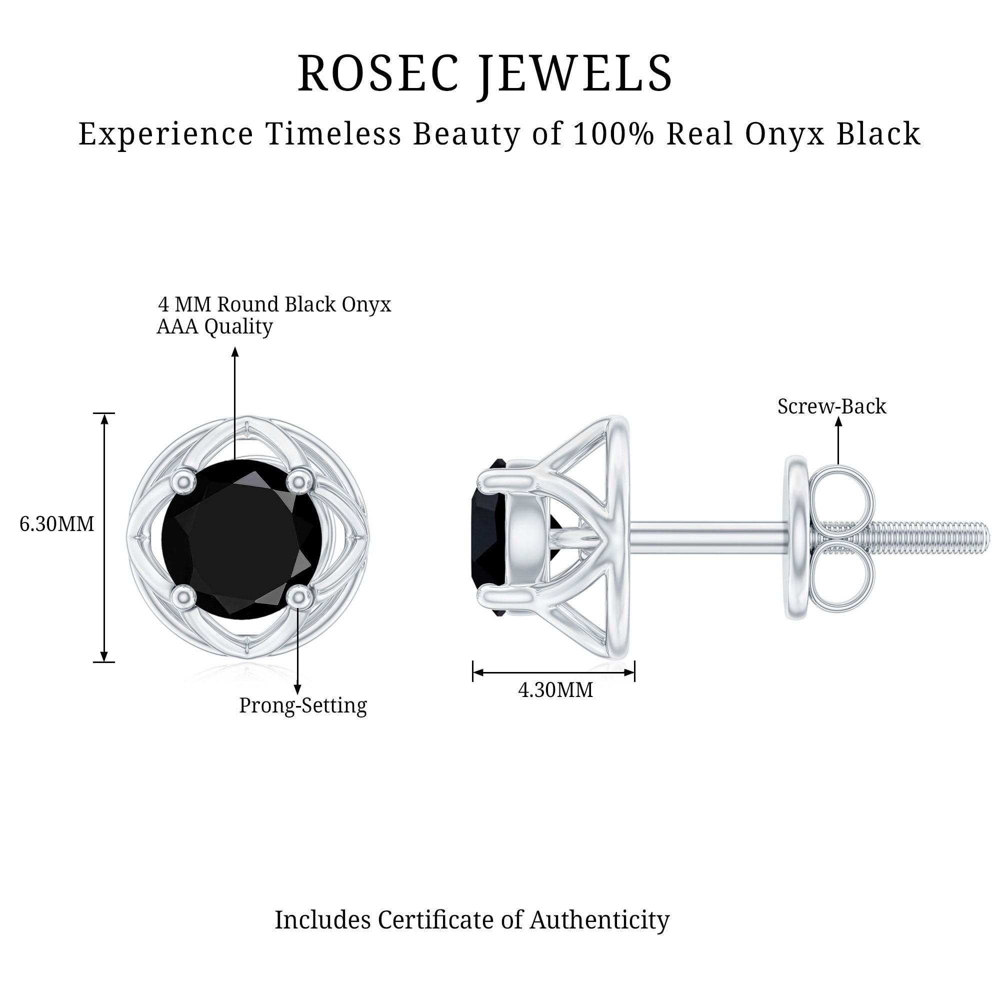 5 MM Black Onyx Solitaire Floral Stud Earrings in Prong Setting