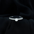 Turn every moment into a forever memory with this exquisite Moissanite Engagement Ring, thoughtfully crafted to symbolize love in its purest form. At the center of this elegant design lies a brilliant 5 MM round cut moissanite, set securely in prong setting. Known for its incredible brilliance and durability, moissanite makes a stunning and sustainable alternative to traditional diamonds. This timeless Solitaire Engagement Ring radiates understated elegance, simplicity, and a touch of refined glamour. The center stone is flanked by sparkling round side stones, adding extra dimension and light-catching charm to the piece. Together, the design tells a story of lasting love, devotion, and shared dreams. Perfect for the modern bride who appreciates both style and substance, this Half Carat Moissanite Ring offers a luxurious look without compromising on values. The milgrain details on the edges of the shank have a glamorous vintage style design that makes it perfect for the one who loves unique and timeless details. Available in US ring sizes from 3 to 13, it guarantees a comfortable and secure fit. Presented in a beautifully designed jewelry box, this Moissanite Solitaire Ring is ready to make your forever shimmer with elegance, emotion, and brilliance.