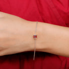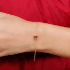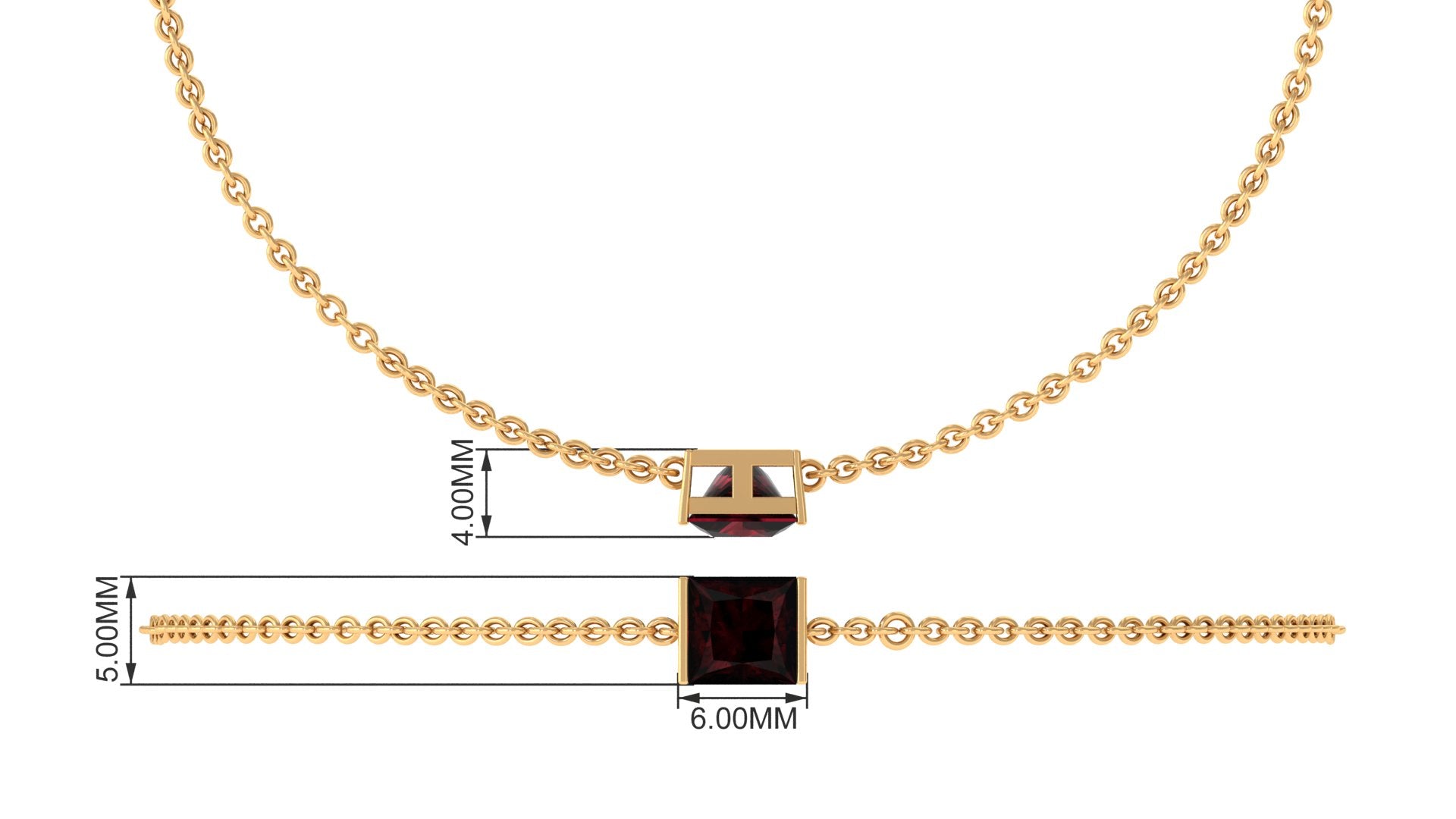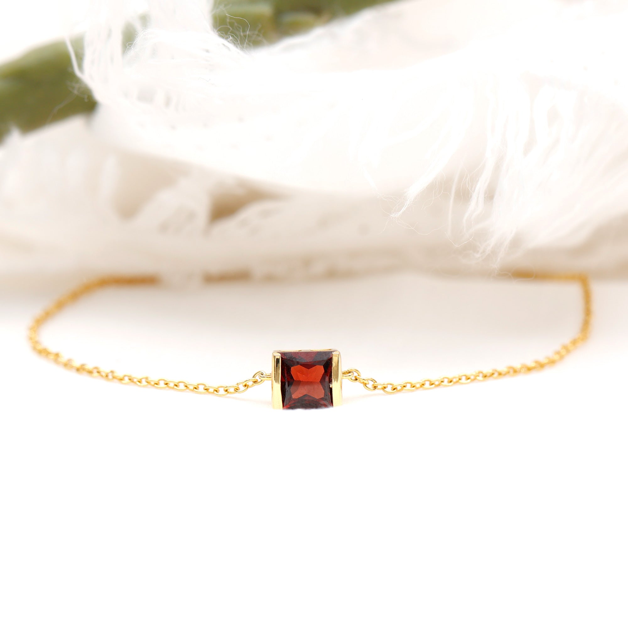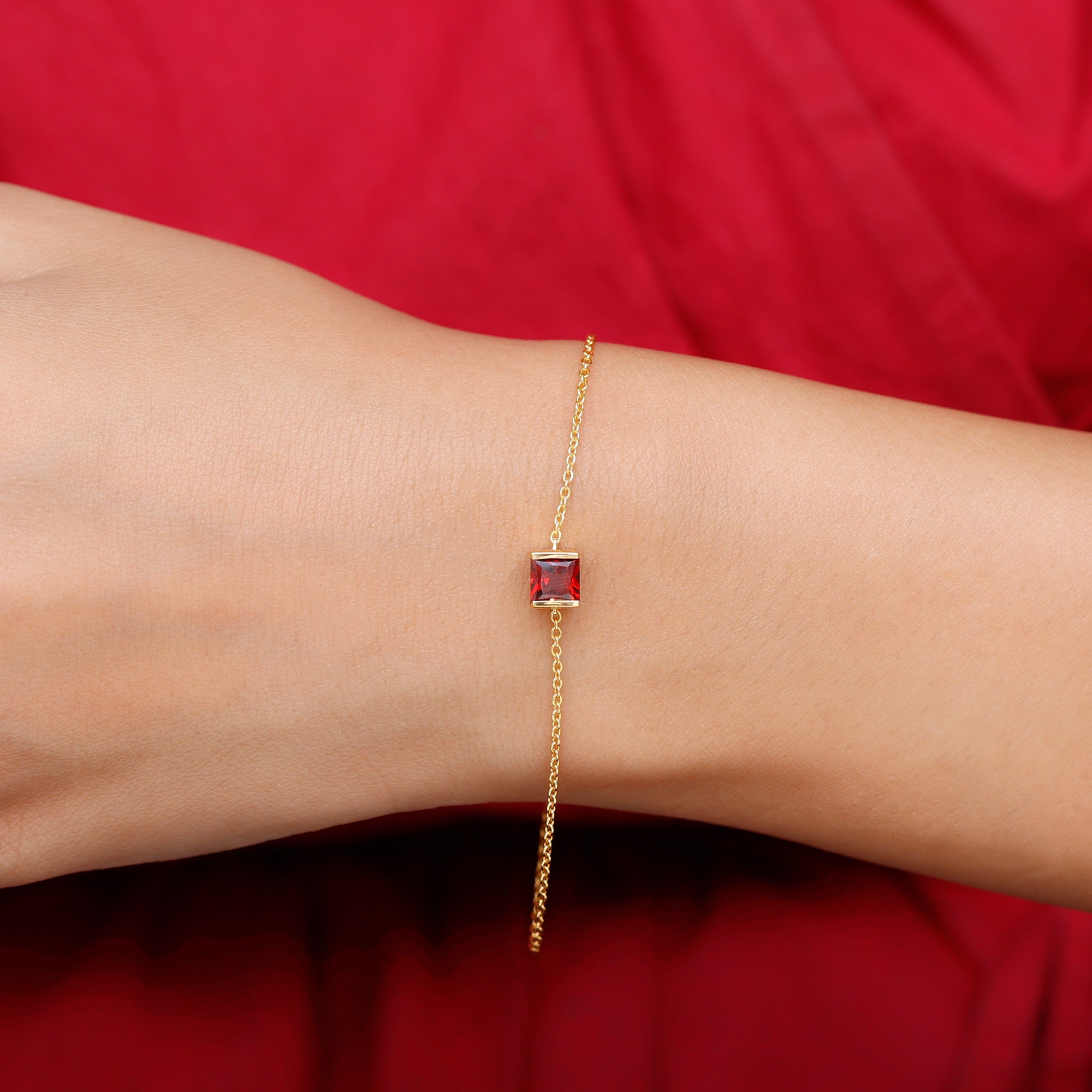Grab this shinning Solitaire Chain Bracelet for your lady embellished with 5 MM Princess Cut Garnet in Solid Gold with Bezel Setting. She is going to definitely love you to the moon and back.