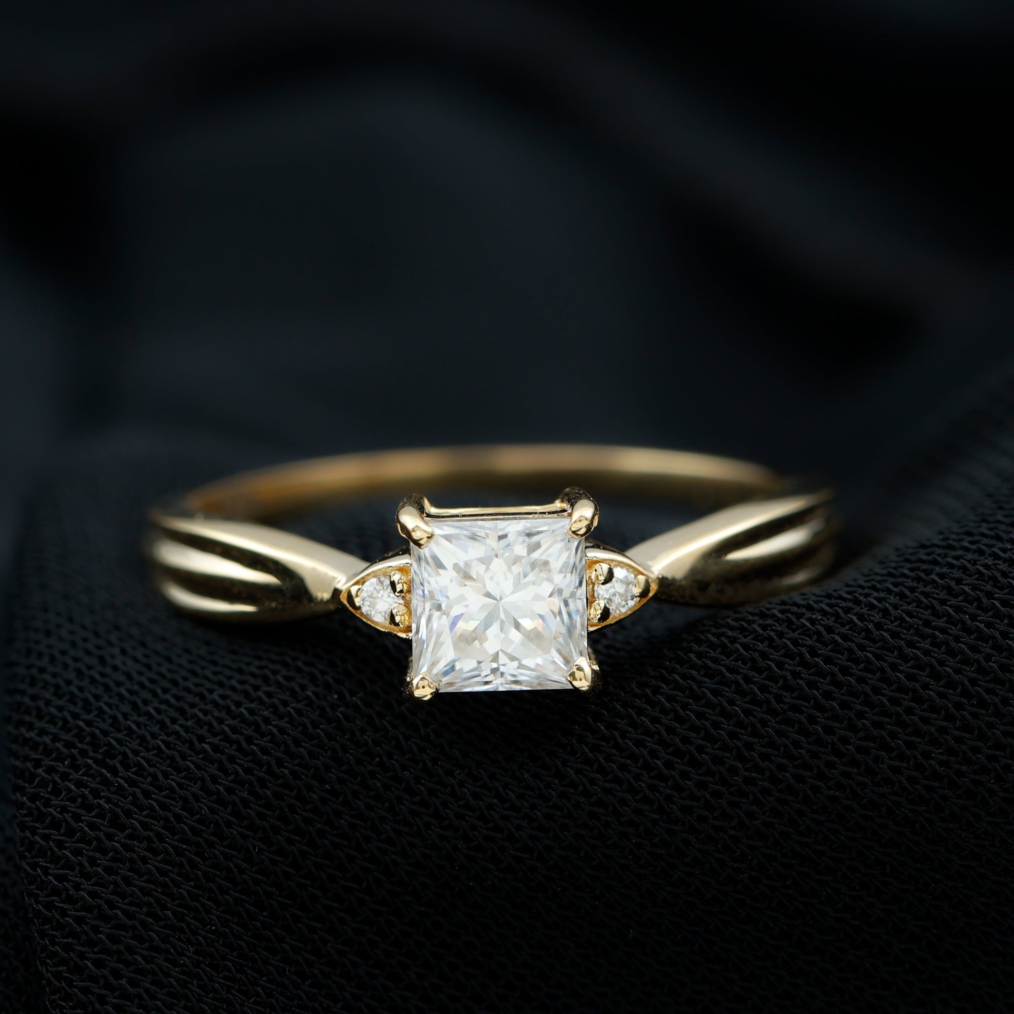 Wrap your love story around your finger in the form of this stunning Diamond Promise Ring. Designed with a pinched shank, this Solitaire Ring offers a delicate yet sophisticated look, enhancing the beauty of the dazzling princess cut lab grown diamond at its center. To add an extra touch of brilliance, two delicate stones are set on either side, subtly enhancing the overall charm without overpowering the centerpiece. Whether you are planning a dream proposal or simply want a 1 ct Diamond Ring for her that tells your love story, this piece has it all. Let this Princess Cut Ring be a shining reminder of the love you share and the memories yet to be made.