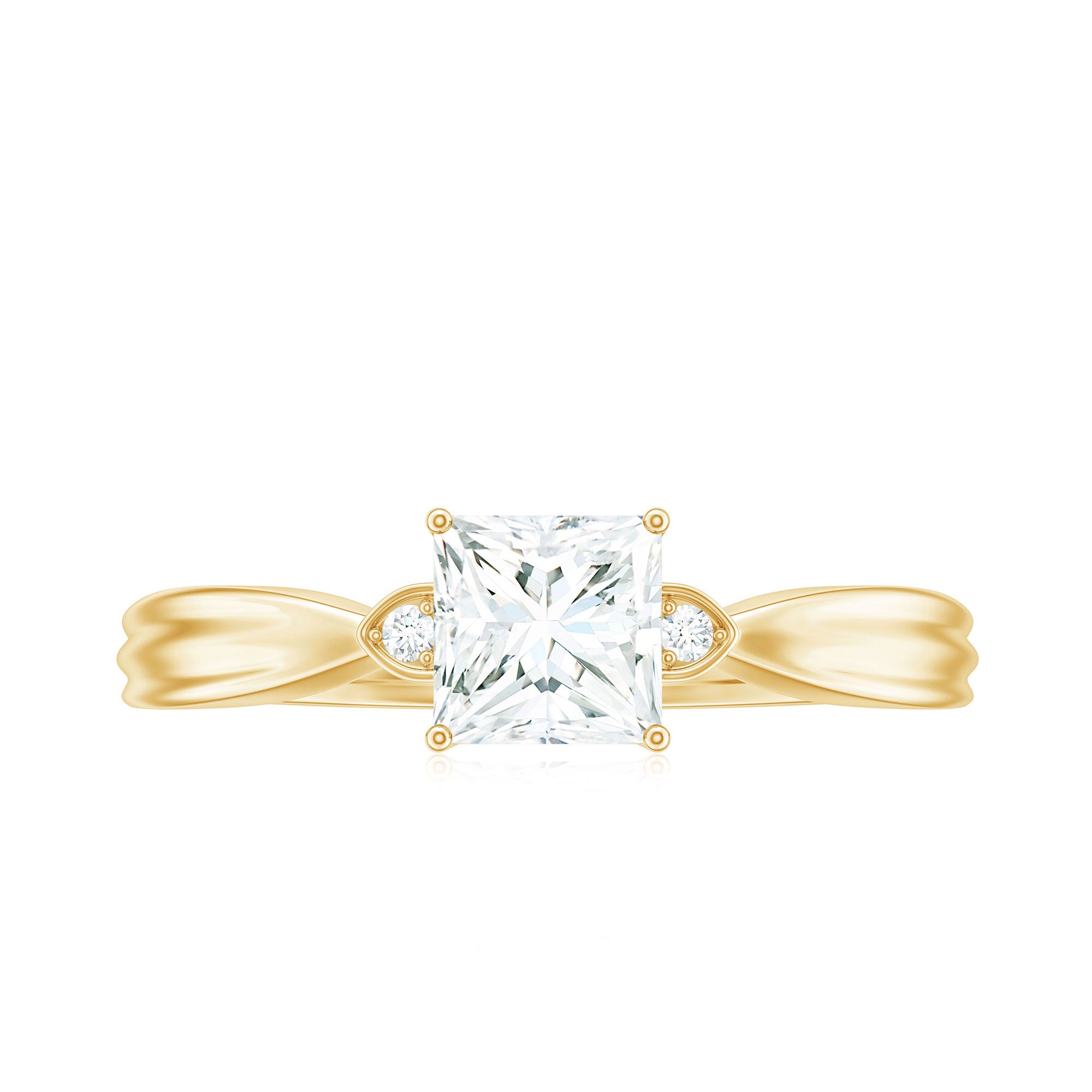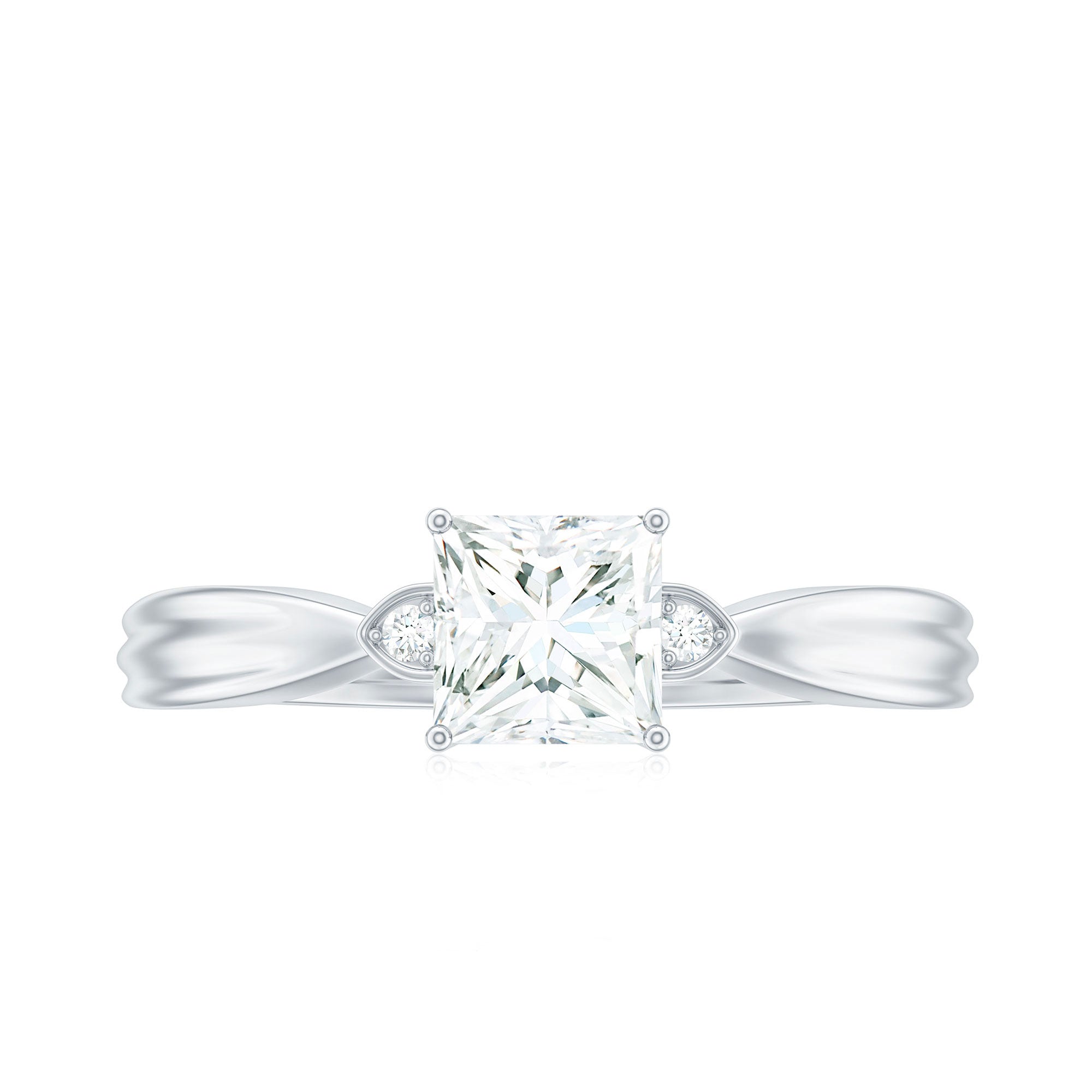 Wrap your love story around your finger in the form of this stunning Diamond Promise Ring. Designed with a pinched shank, this Solitaire Ring offers a delicate yet sophisticated look, enhancing the beauty of the dazzling princess cut lab grown diamond at its center. To add an extra touch of brilliance, two delicate stones are set on either side, subtly enhancing the overall charm without overpowering the centerpiece. Whether you are planning a dream proposal or simply want a 1 ct Diamond Ring for her that tells your love story, this piece has it all. Let this Princess Cut Ring be a shining reminder of the love you share and the memories yet to be made.