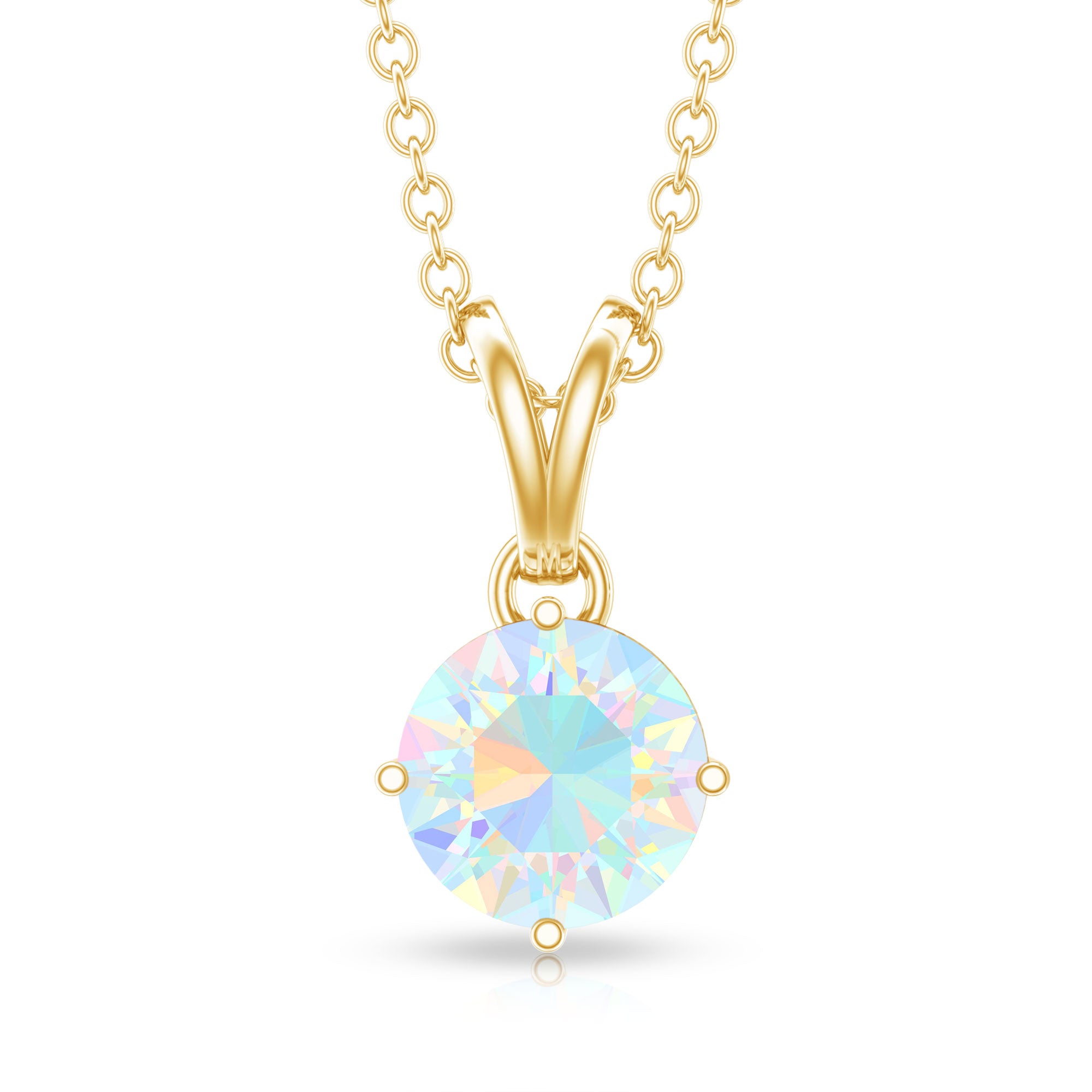 5 MM Round Cut Ethiopian Opal Solitaire Pendant in 4 Prong Setting with Rabbit Ear Bail