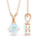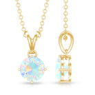 Magnify your style with this beautiful Drop Pendant Necklace is embellished with Round Shape Ethiopian Opal set as Solitaire in 4 Prong Setting. This Gold Rabbit Ear Bail Pendant is Composed of Solid Gold.