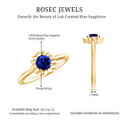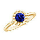 5 MM Round Lab Created Blue Sapphire Gold Floral Solitaire Ring in Prong Setting