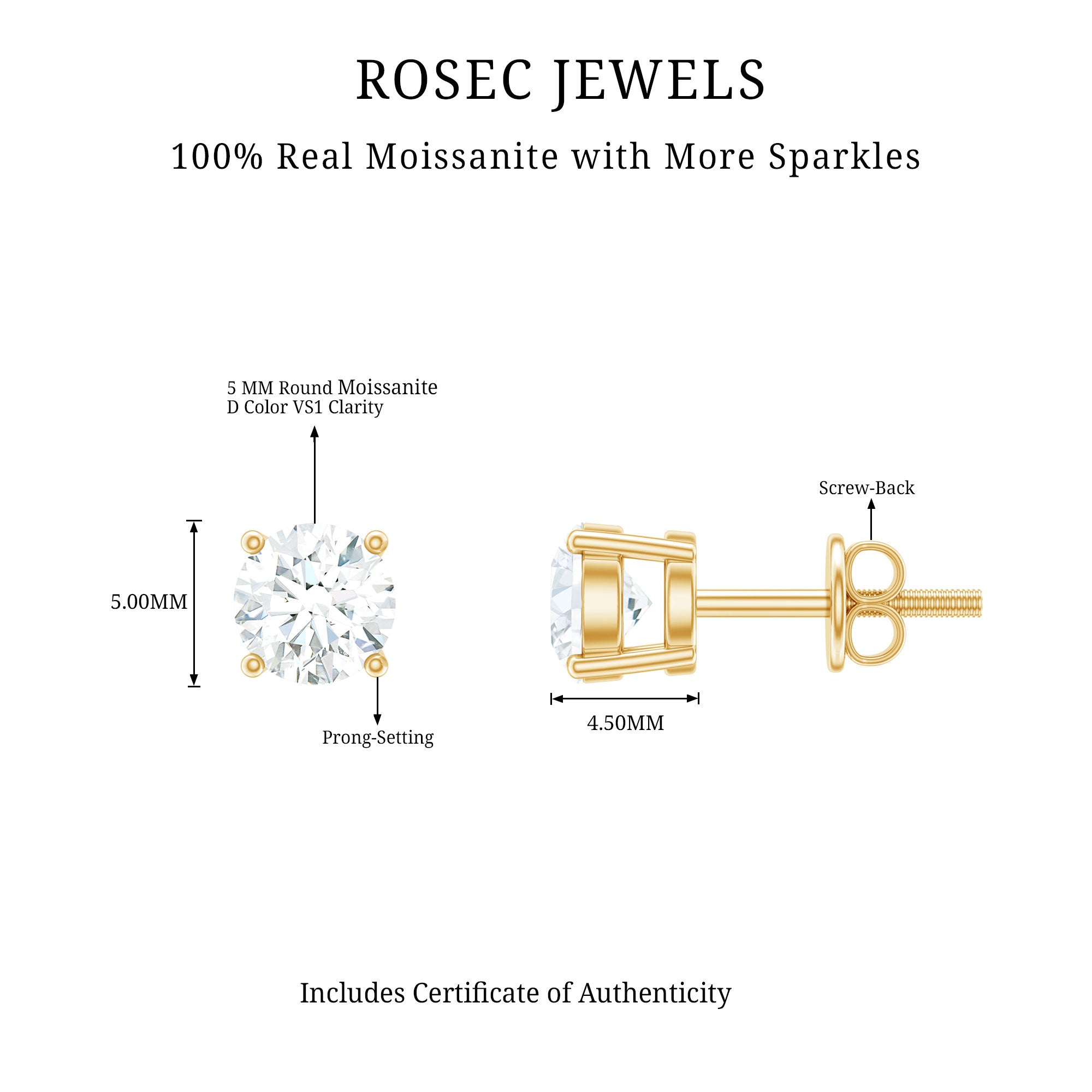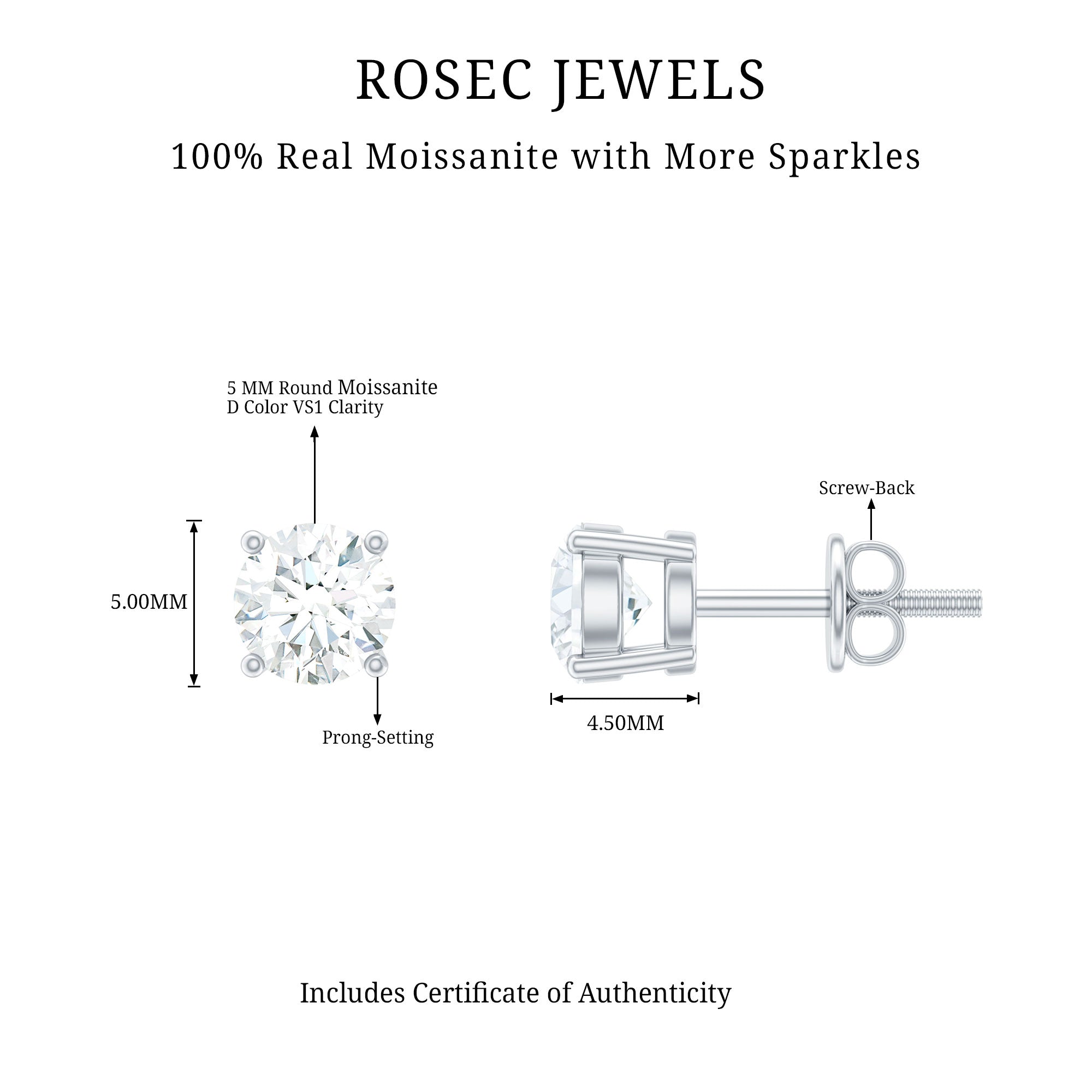 5 MM Round Moissanite Solitaire Screw Back Stud Earrings
