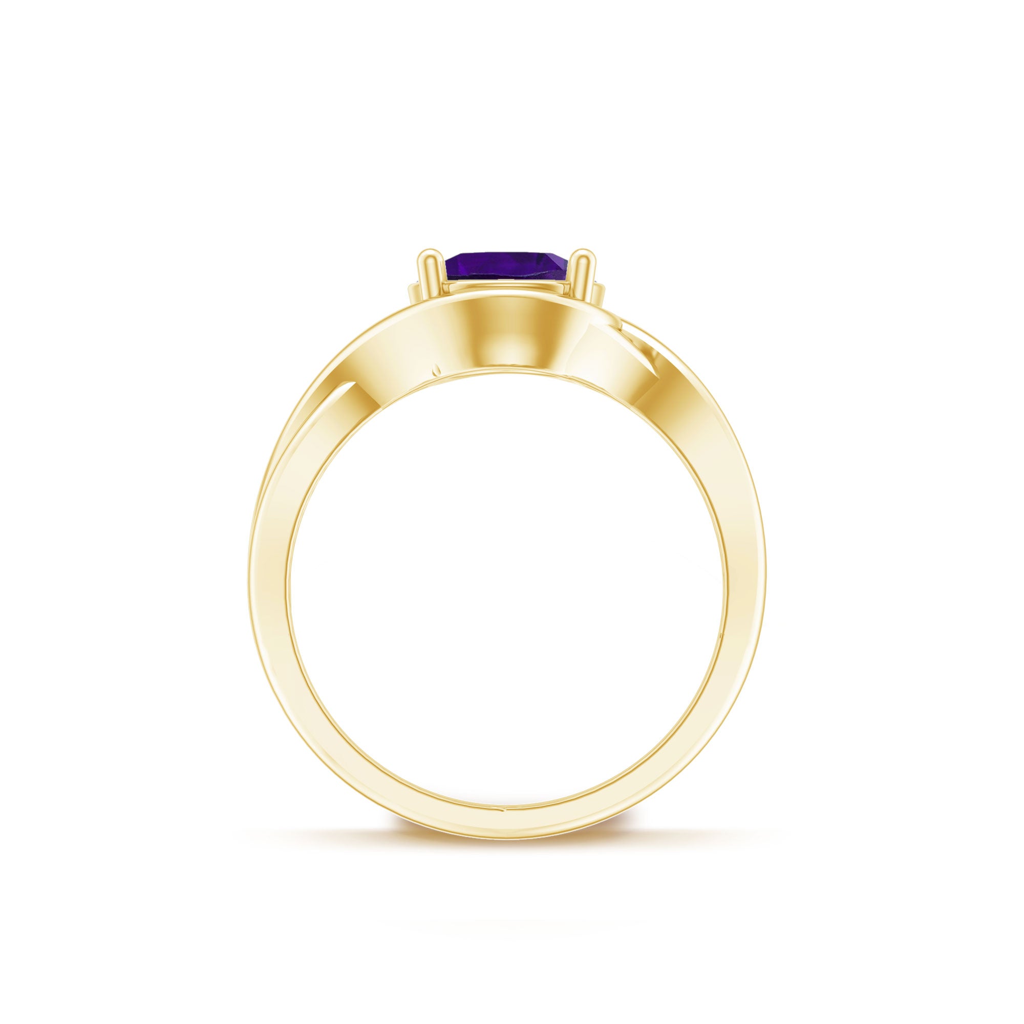 Crossover Shank Solitaire Ring is set with gigantic Round Shape Amethyst as Solitaire in 4 prong setting with beautiful spiral shank. The perfect gift for any Special Occasion for your loved ones.