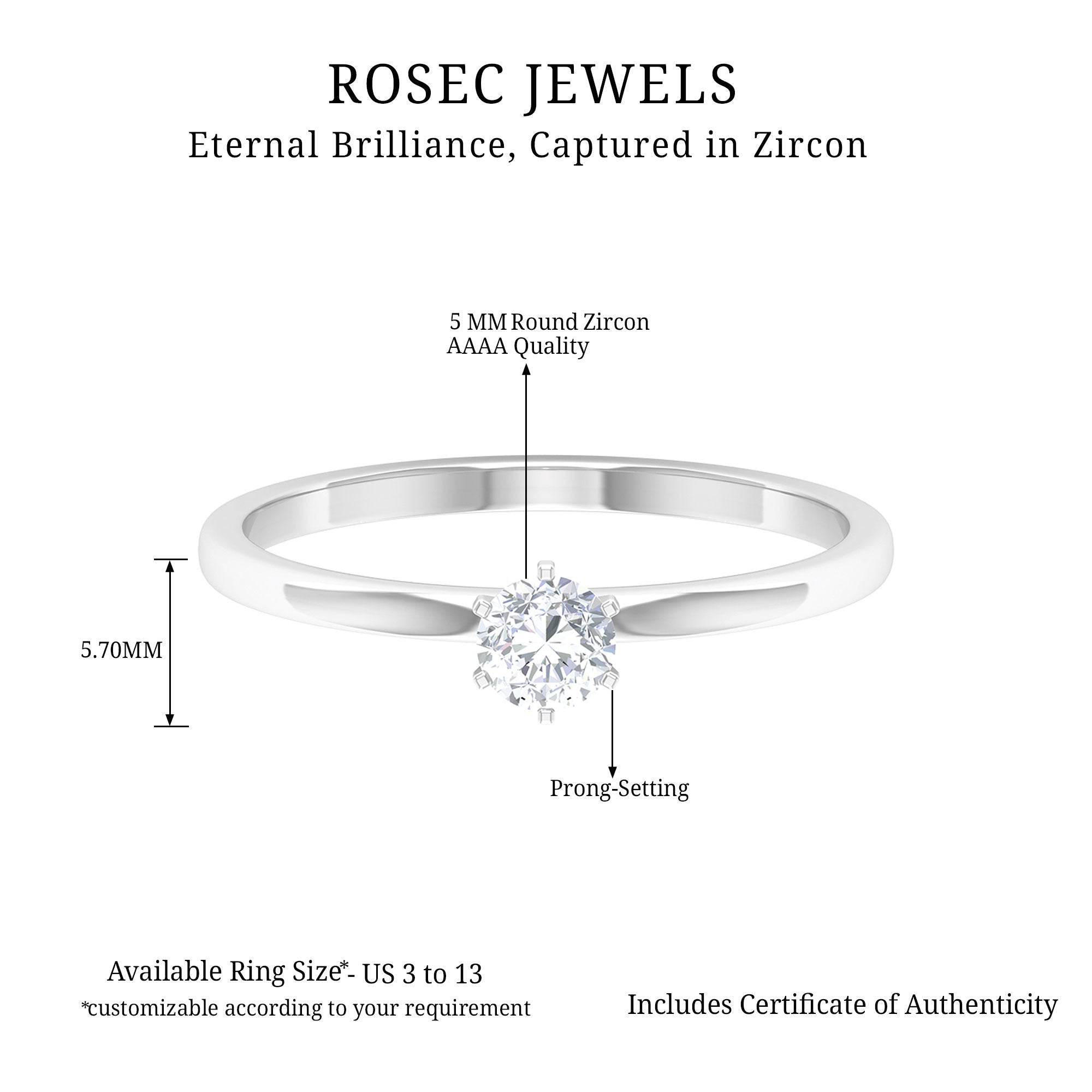 5 MM Round Zircon Solitaire Promise Ring