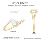 Embrace sophistication with a Moissanite Engagement Ring crafted to radiate beauty and significance. At its heart lies a breathtaking 5MM heart shaped moissanite, securely held in a prong setting. The bypass band elegantly encircles the center stone, creating a flowing, romantic silhouette that symbolizes the union of two paths into one. Small round moissanites twinkle along the band, adding a subtle shimmer that enhances the radiance of the central stone. This seamless twist imparts a contemporary, flowing appearance to the Bypass Engagement Ring while symbolizing unity, balance, and the shared journey of two individuals uniting. With D color and VS1 clarity, the moissanite emits pure light, making this Heart Engagement Ring an exquisite choice for proposals, weddings, anniversaries, or any significant occasion. The bypass design not only offers a contemporary twist on the classic solitaire but also enhances comfort, making it suitable for daily wear. Its lightweight yet eye-catching design is ideal for someone who values understated luxury with a touch of individuality. This Solitaire Engagement Ring comes beautifully presented in a keepsake jewelry box, ready to be gifted or treasured for oneself. It transcends being merely a Solitaire Moissanite Ring; it embodies your narrative, enveloped in sparkle.