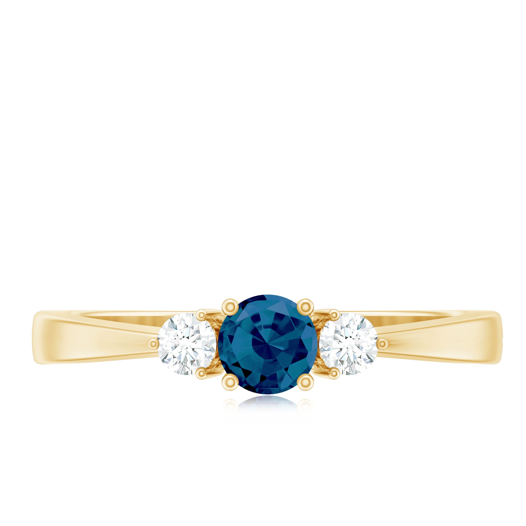 Crafted to honor a sincere commitment, this Blue Topaz Promise Ring embodies the essence of loyalty, love, and connection in a sophisticated and graceful manner. At its core lies a round shape London Blue Topaz, securely held in a prong setting. Two small round diamond accents set on both sides of the center blue topaz stones, meticulously arranged to impart a gentle, luminous glow. The juxtaposition of the dark center against the shimmering white stones creates a timeless appearance infused with contemporary allure. Whether you are commemorating a promise, celebrating a personal achievement, or simply seeking a ring with profound significance, this design conveys a message of understated elegance. The minimalist silhouette of this Dainty Promise Ring for Her allows for effortless wear alone or in combination with other jewelry, while its thoughtful design guarantees it remains distinctive in a subtle manner. Constructed with AAA quality london blue topaz and HI-SI quality diamonds, each component is crafted with meticulous attention to detail. Offered in a broad array of sizes, this Blue Topaz and Diamond Ring makes it simple to discover the perfect fit. The Commitment Ring is presented in an exquisite jewelry box and includes a gemstone certificate for additional reassurance. Fashionable and meaningful, this Pre Engagement Ring serves as a lasting reminder of a relationship founded on trust, love, and shared experiences, making it ideal for gifting or cherishing close to your heart.