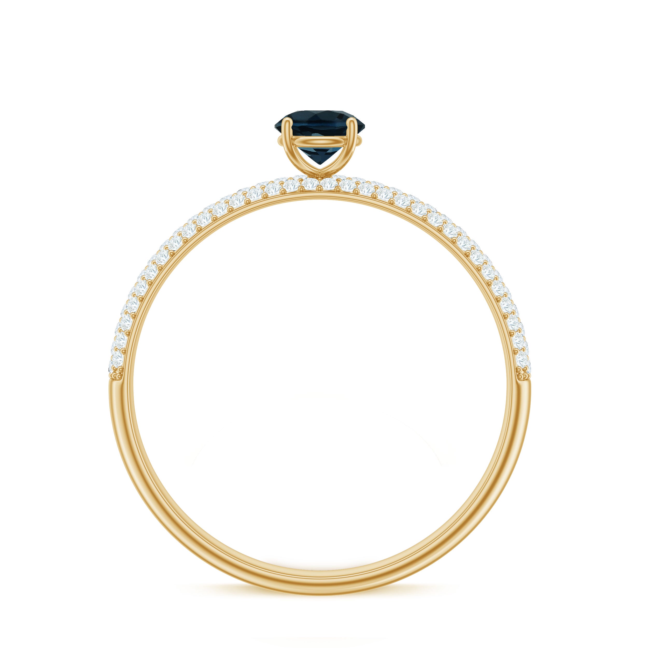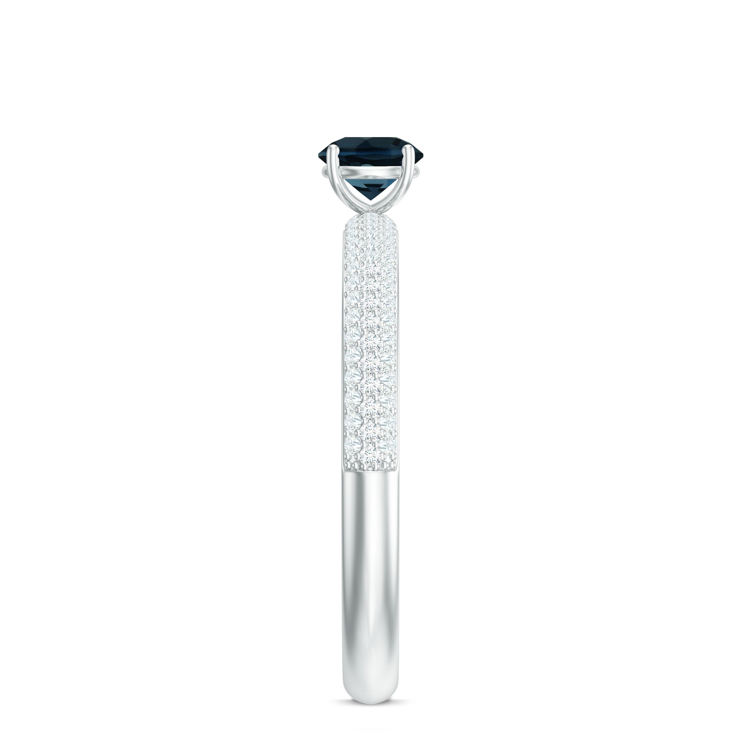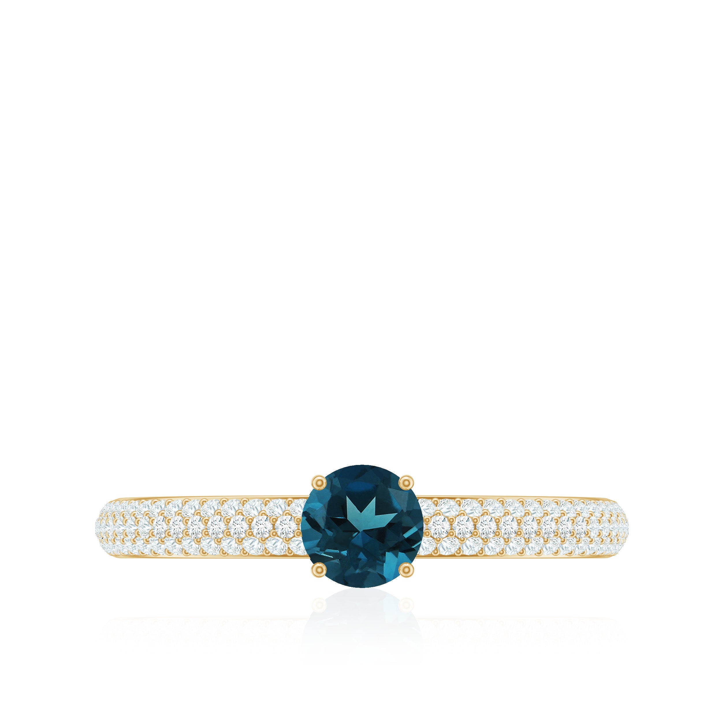 Crafted to honor your most treasured moments, this Solitaire Promise Ring exudes contemporary elegance. At its core lies a breathtaking 5 MM round shaped London Blue Topaz, securely set in a prong setting, renowned for its remarkable brilliance and enchanting sparkle. Surrounding this focal point are exquisite pave set side Diamond stones, carefully selected for their HI color and SI clarity, designed to reflect light from every angle and celebrate your love with unmatched radiance. Presented in an elegant jewelry box, this London Blue Topaz Ring is poised to create lasting memories, whether for a surprise proposal, an anniversary celebration, or any special occasion that requires a hint of extra sparkle. Expertly crafted, this Blue Topaz Solitaire Ring features side stones that beautifully enhance the central stone, infusing a sense of sophistication and elevating its overall allure. Let this stunning London Blue Topaz Promise Ring serve as the luminous symbol of your shared journey, a piece that will continue to shine with your love for many years to come.