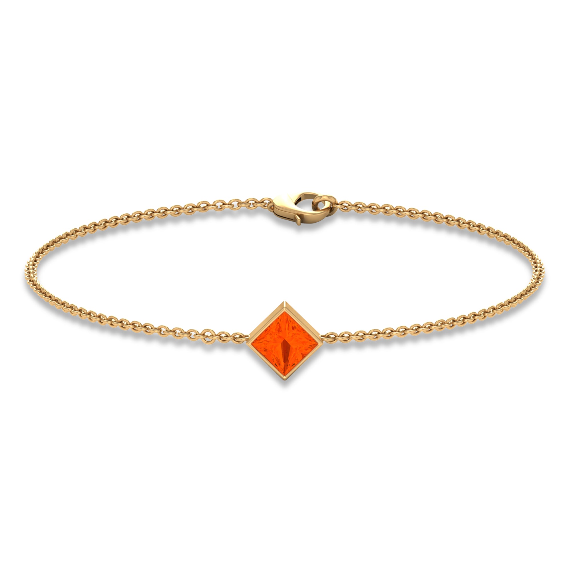 5mm Princess Cut Fire Opal Solitaire Chain Bracelet