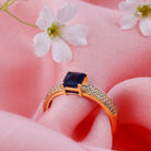 5mm Princess Cut Lab Created Blue Sapphire Promise Ring with Diamond