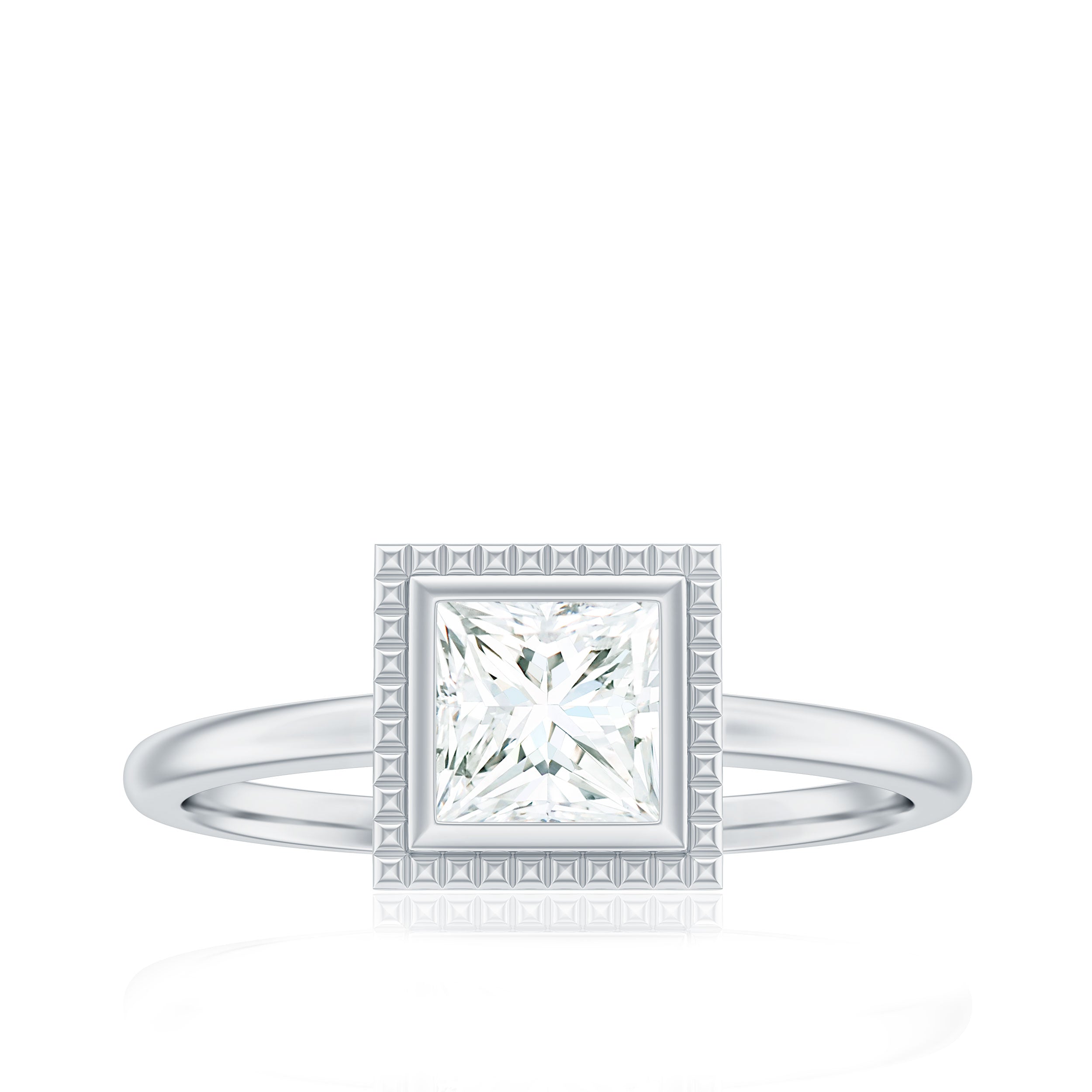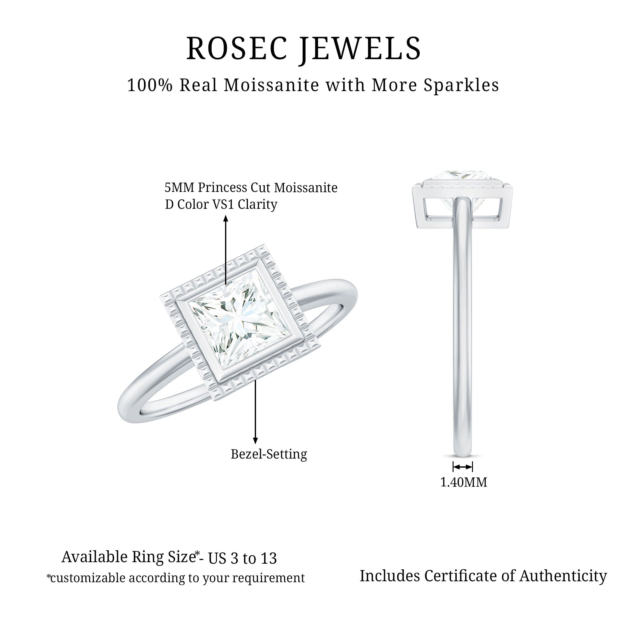 5mm Princess Cut Moissanite Solitaire Ring in Bezel Setting