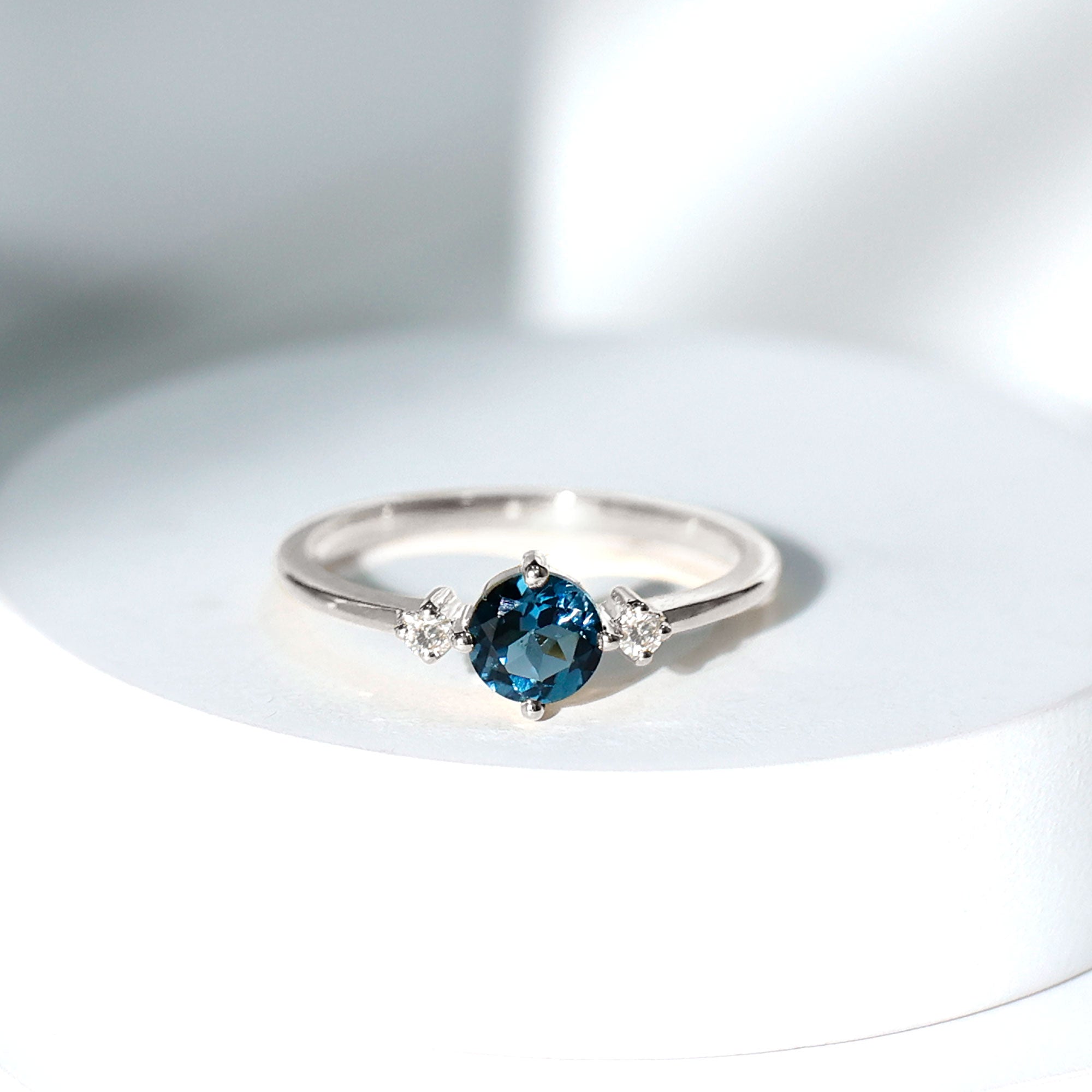 5mm Round London Blue Topaz Minimal Promise Ring with Diamond