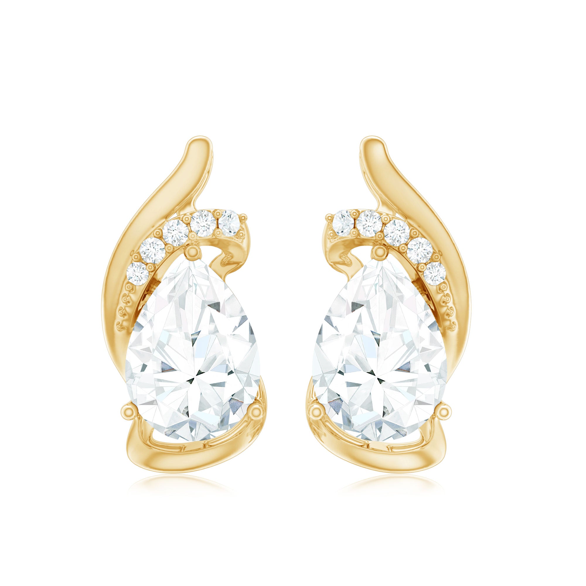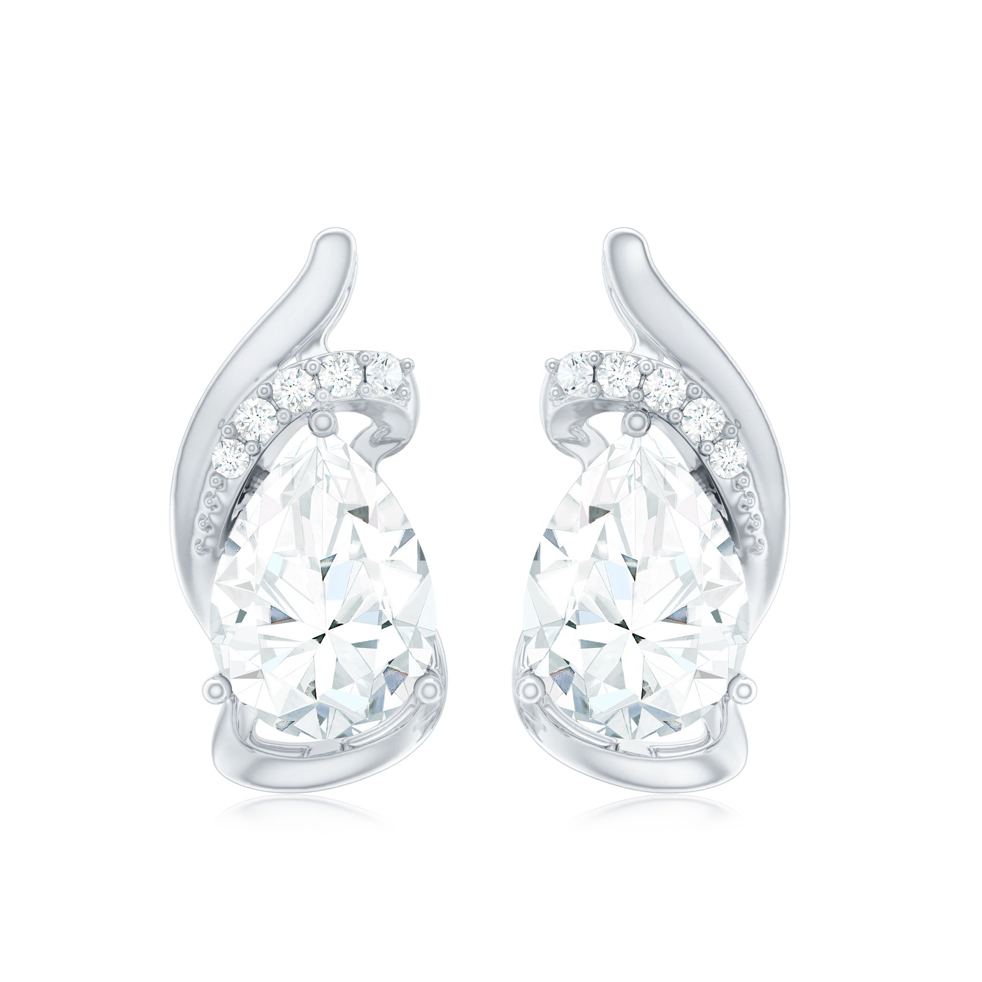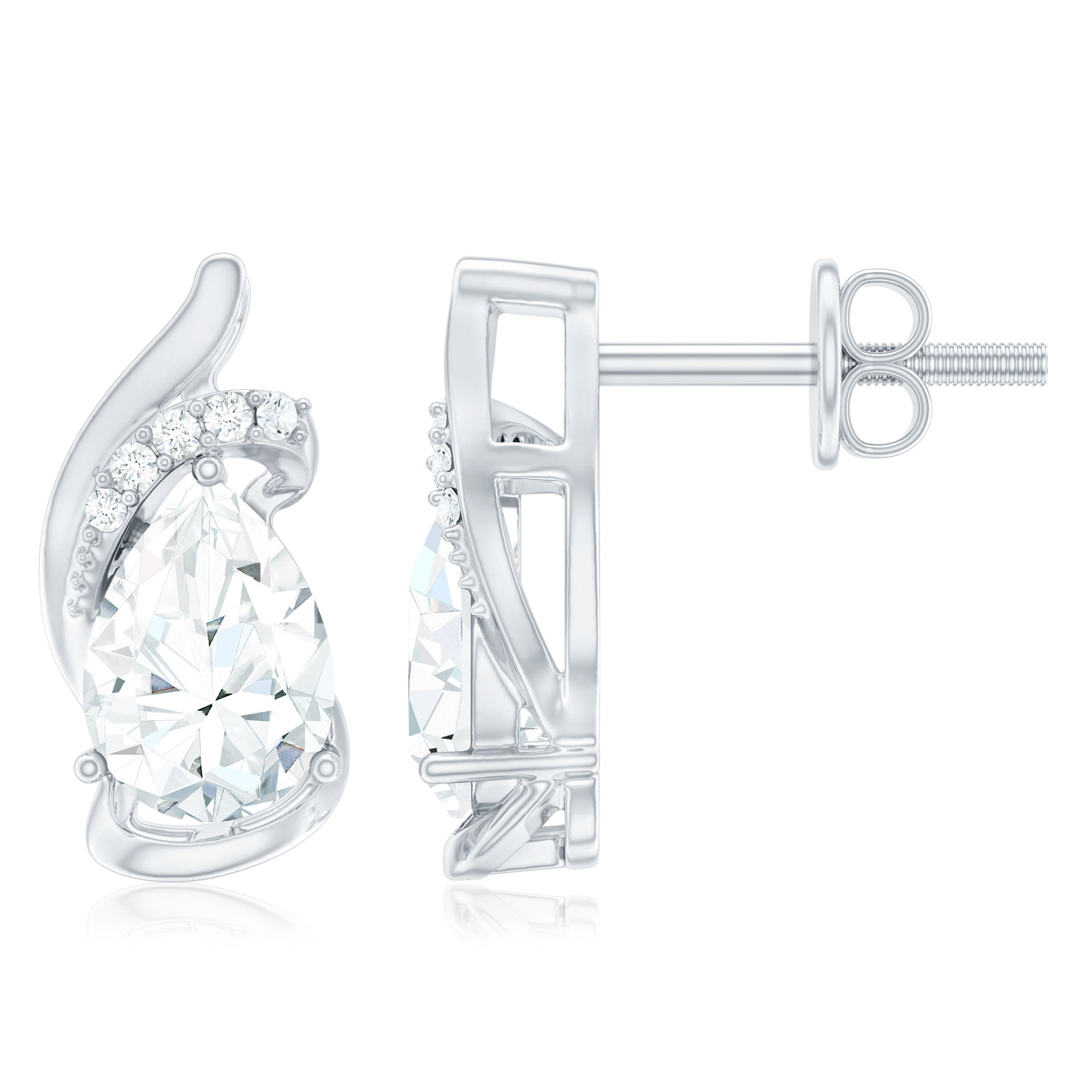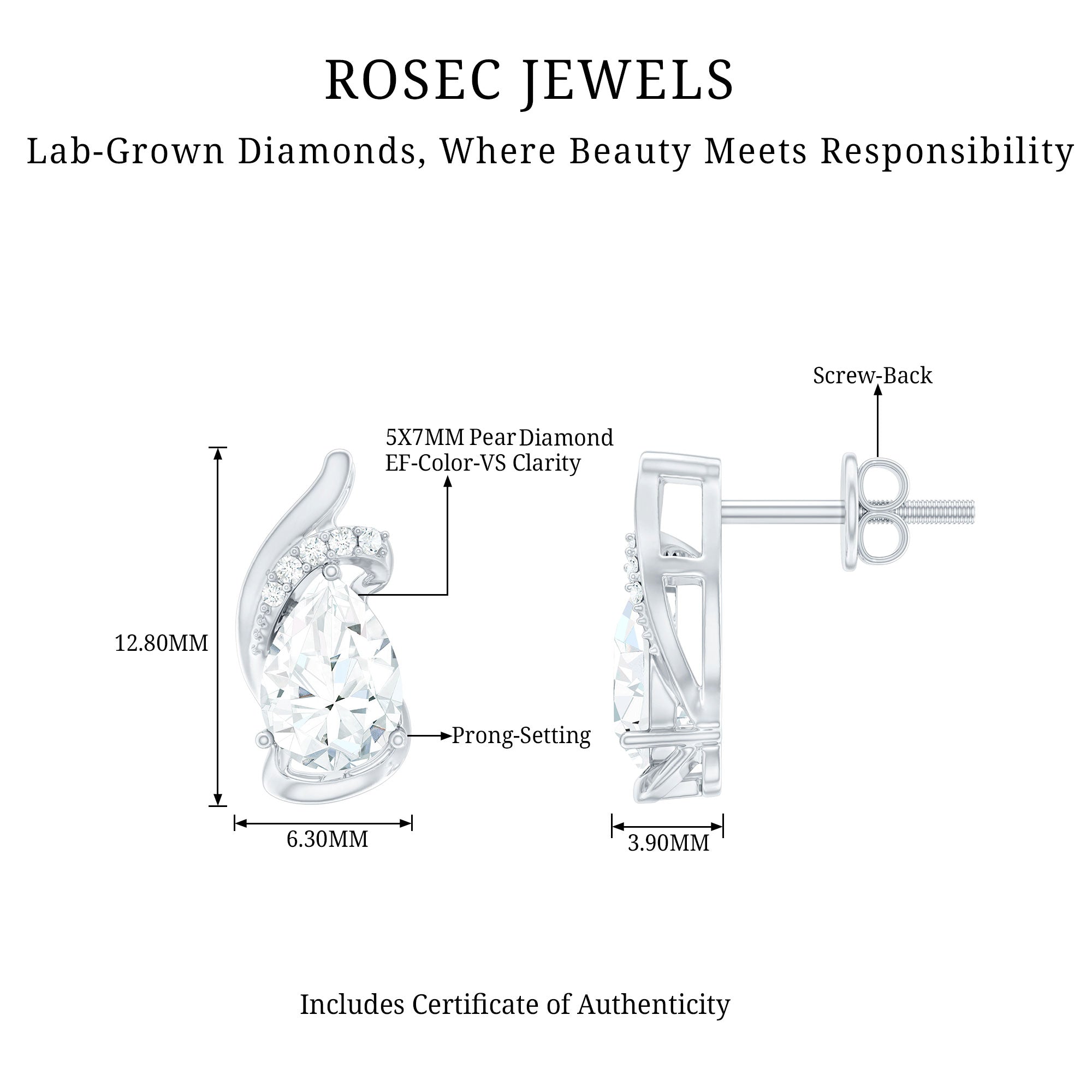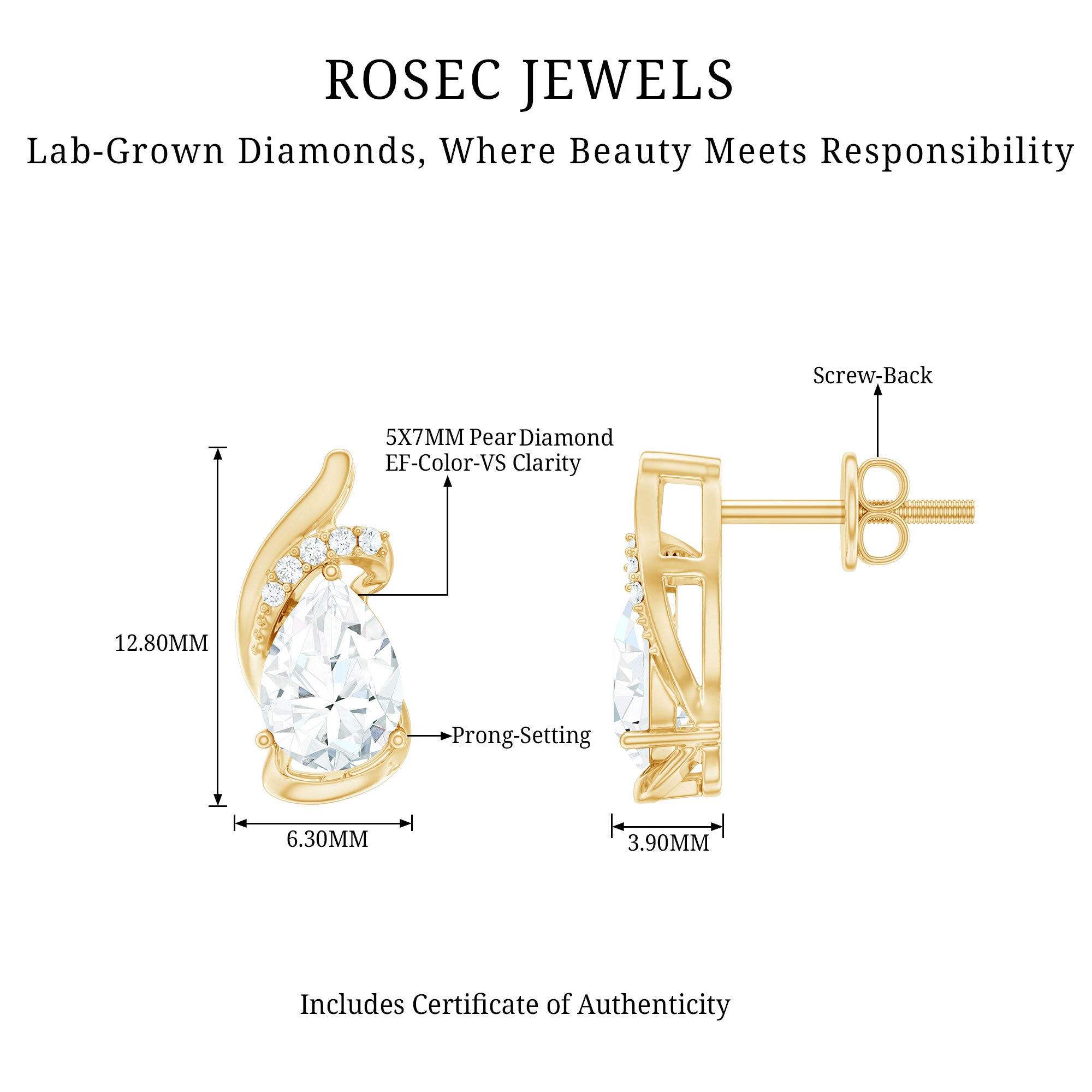 Grace your ears with timeless elegance by wearing these Statement Stud Earrings featuring a 5X7 MM pear shaped diamond gemstone of EF-VS Quality set in prong setting with small round gemstones set on a unique wavy metal motif. These Lab Grown Diamond Earrings come with screw back closure for secure wear. Brought to you by Rosec Jewels, these Designer Earrings are handcrafted with ethically sourced, eco-friendly gemstones and come with a certificate of authenticity, its a thoughtful and budget friendly choice for your daily wear or any meaningful occasion. Perfect for birthdays or anniversaries, surprise your beloved with the gift of everlasting brilliance of Diamond Studs as some moments deserve to dazzle.