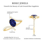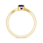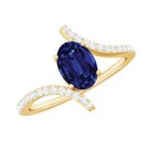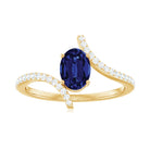 5X7 mm Oval Cut Lab Created Blue Sapphire Bypass Solitaire Ring with Diamond