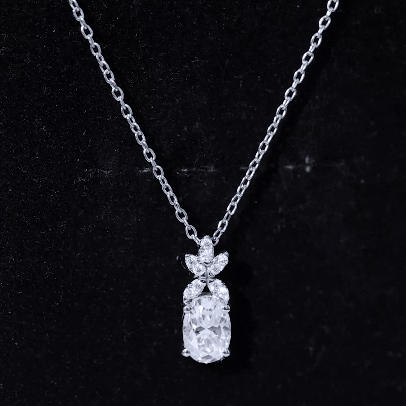 5X7 MM Oval Shaped Lab Grown Diamond Flower Pendant