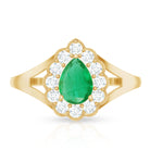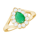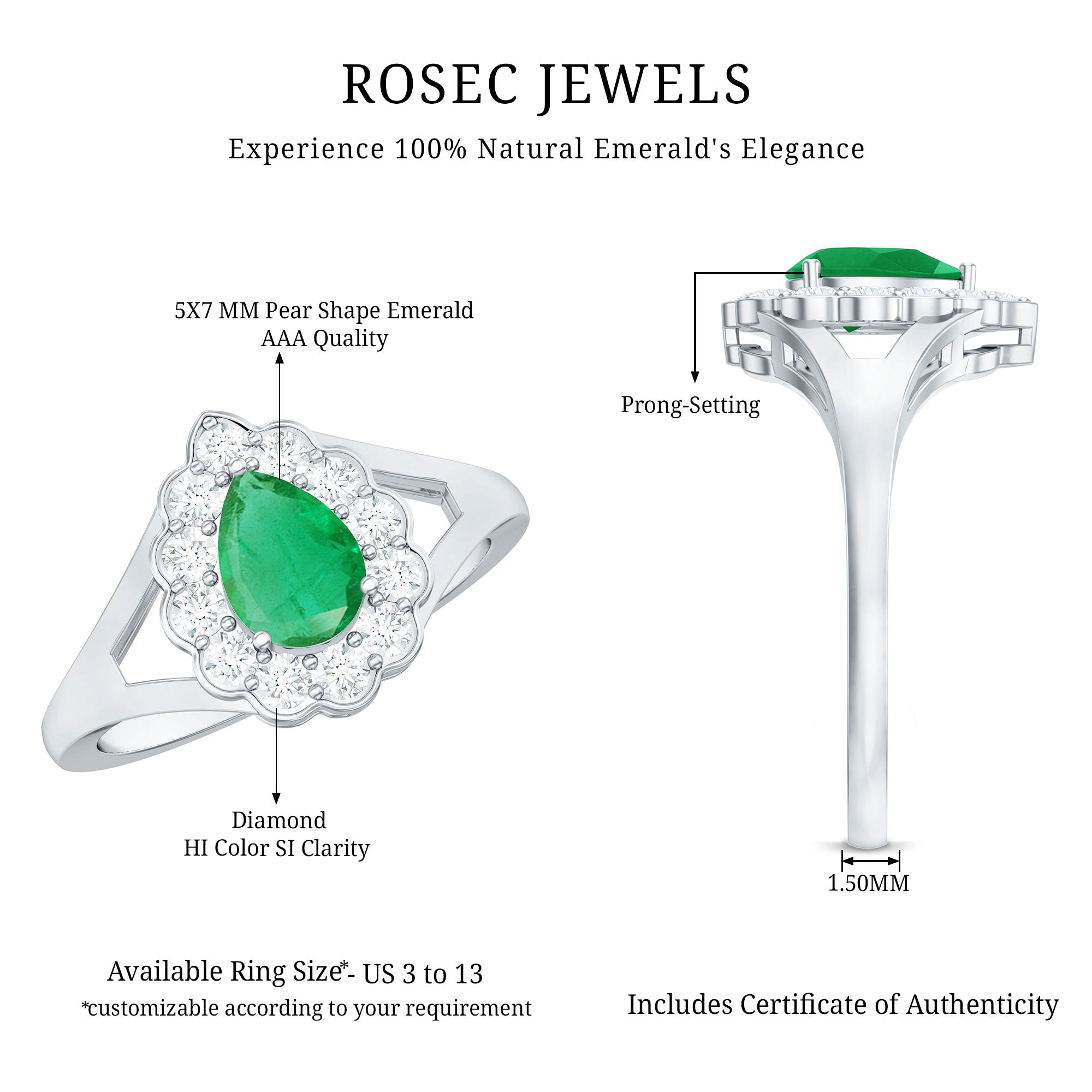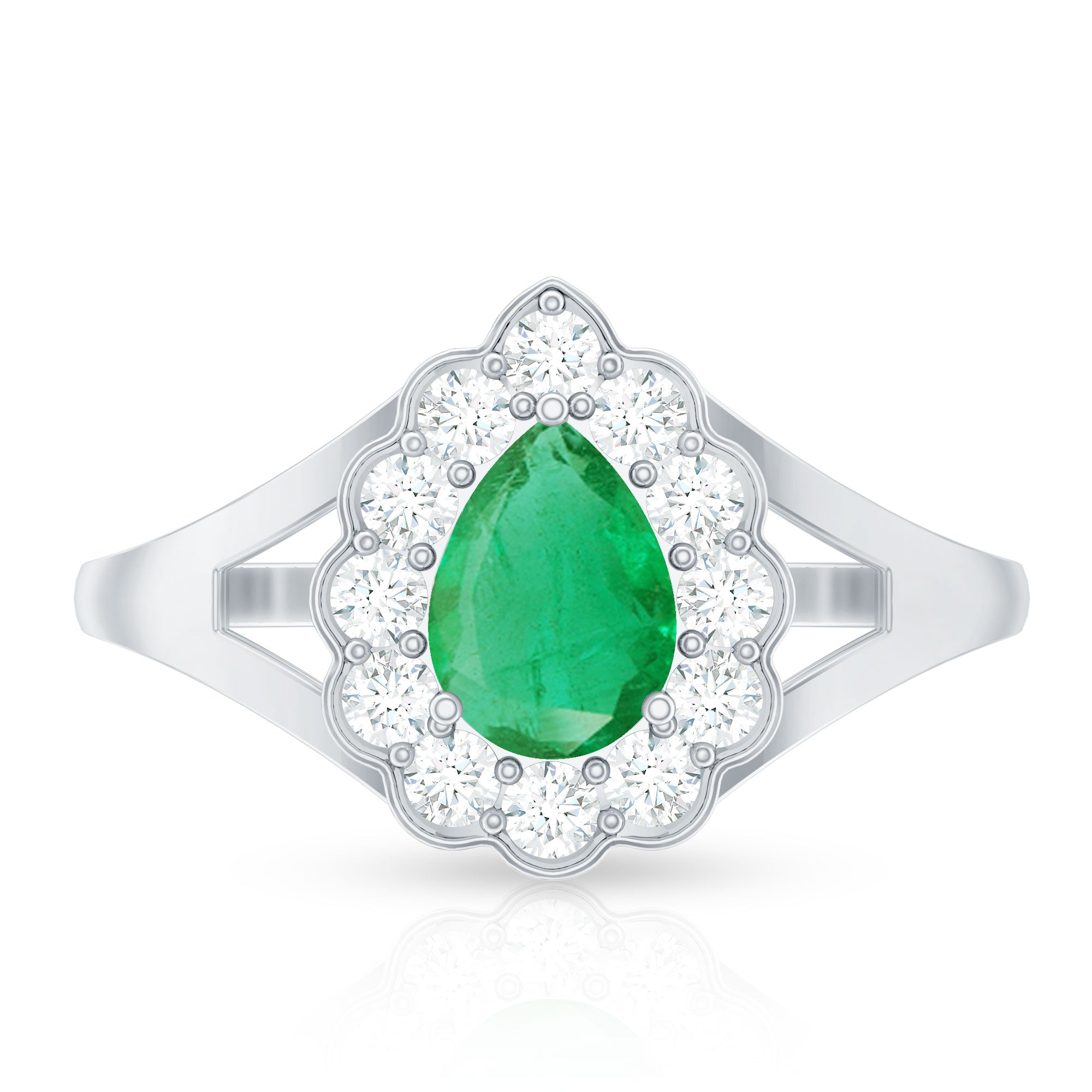 5X7 mm Pear Cut Emerald Engagement Ring with Diamond Halo