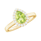 5X7 MM Pear Shaped Peridot Solitaire with Diamond Halo Ring