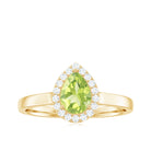Teardrop Solitaire Ring is embellished with Solitaire Pear Shape Peridot Gemstone is set in a prong setting and Round Shape Diamonds in halo.