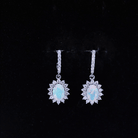 5X7 MM Oval Rainbow Opal Drop Earrings with Moissanite Halo