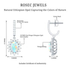 These Real Rainbow Opal Earrings are inspired by the starry sky. They feature a 5X7 MM Oval-Shaped Ethiopian Opal Securely placed in a Prong Setting. The center stone is encircled with smaller moissanite stones and dangles from J Hoops studded with the Moissanites. These Drop Earrings emit the classic shine of AAA Quality Ethiopian Opal and are handcrafted with 14K White Gold Plated Silver. These Earrings with screw on backs will be delivered to you in a signature velvet pouch with the certificate of authenticity.