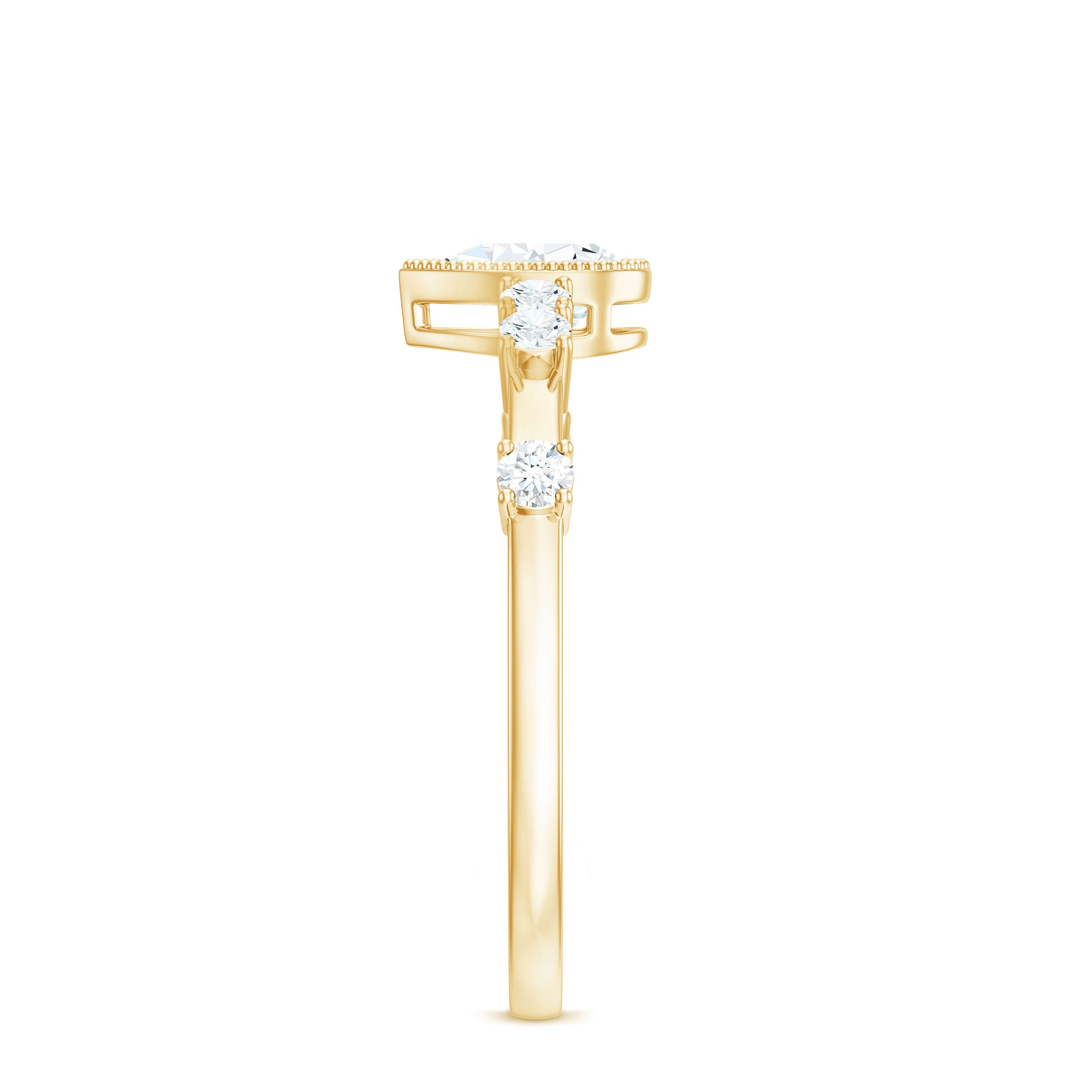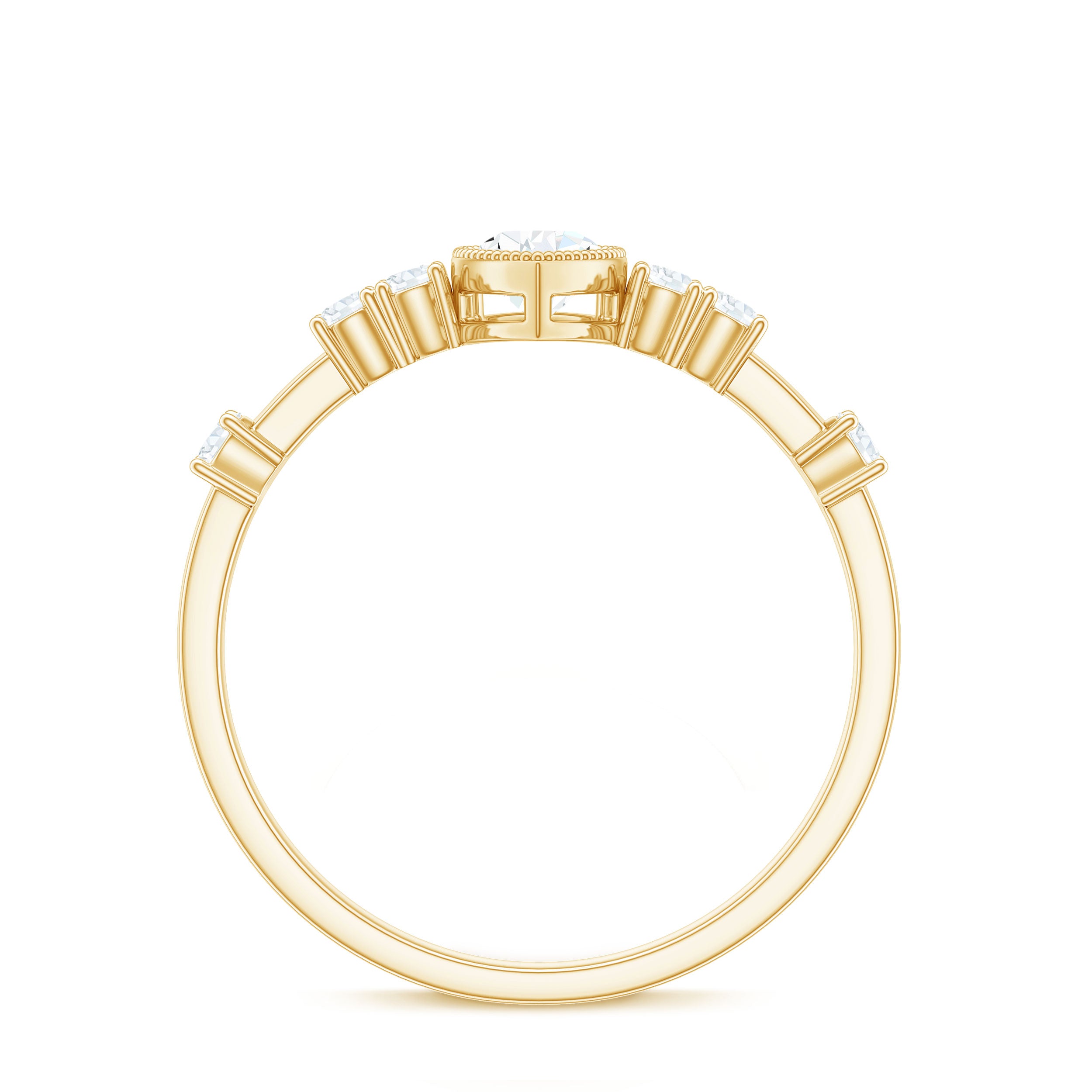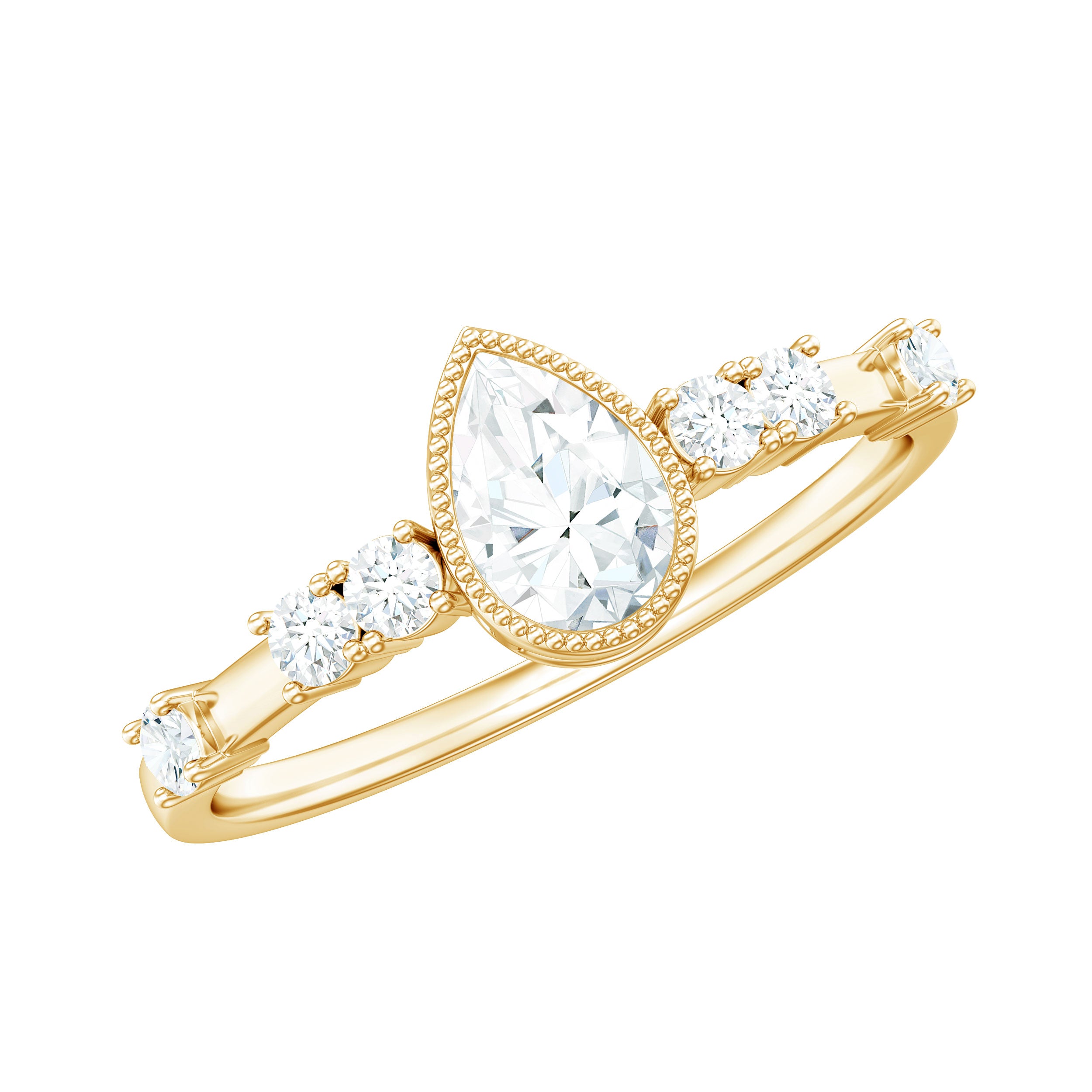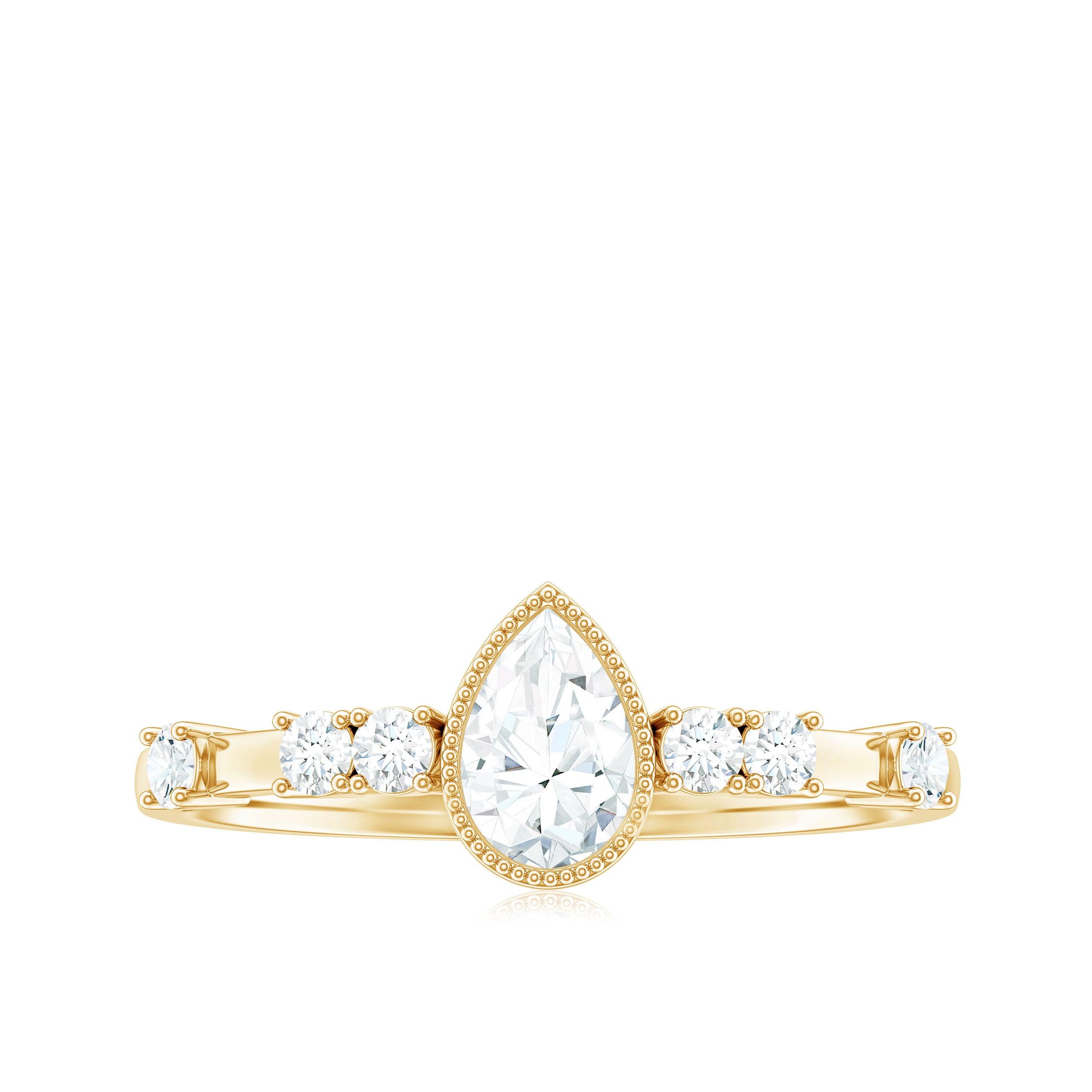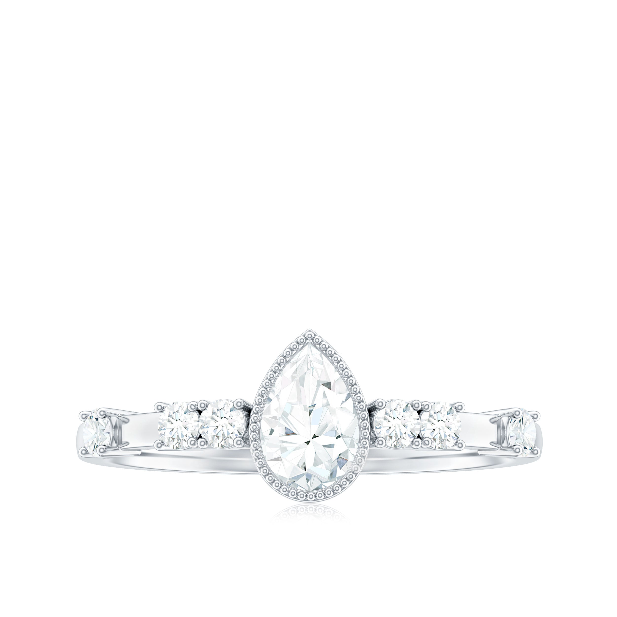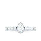 5X7mm Pear Cut Moissanite Solitaire Engagement Ring with Beaded Details