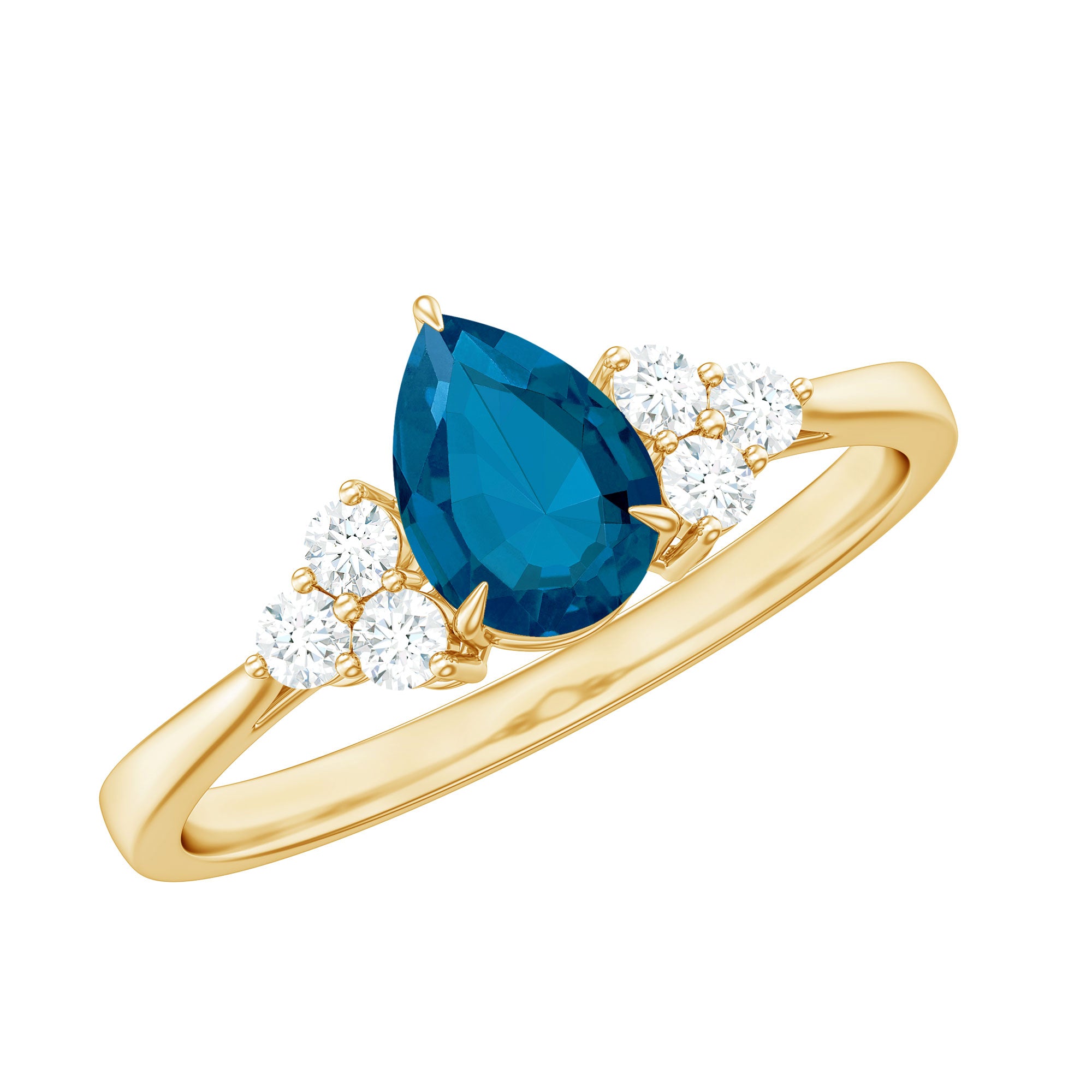 5X7mm Pear Shape London Blue Topaz Engagement Ring with Diamond Trio