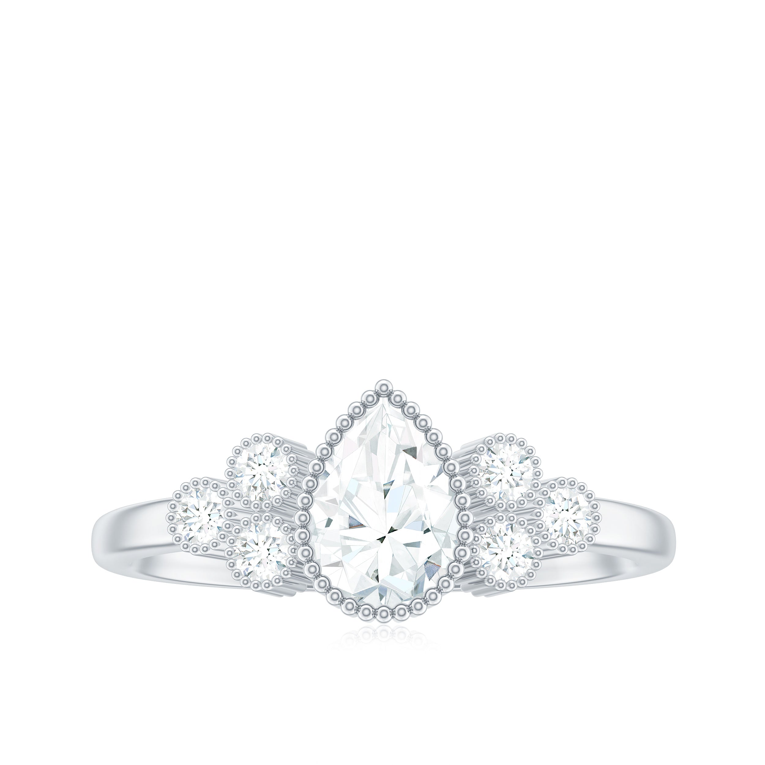 5X7mm Pear Shaped Moissanite Classic Engagement Ring with Beaded Details