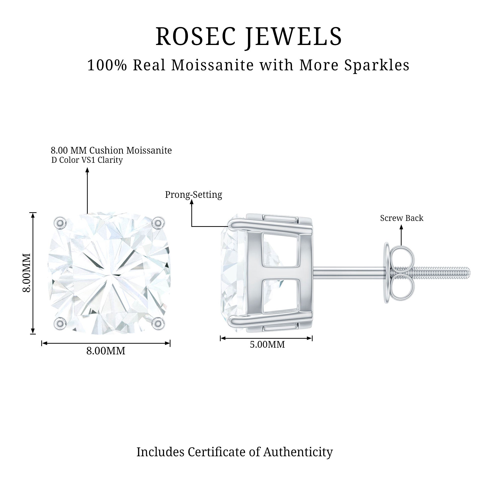 6.25 CT Cushion Cut Moissanite Solitaire Stud Earrings