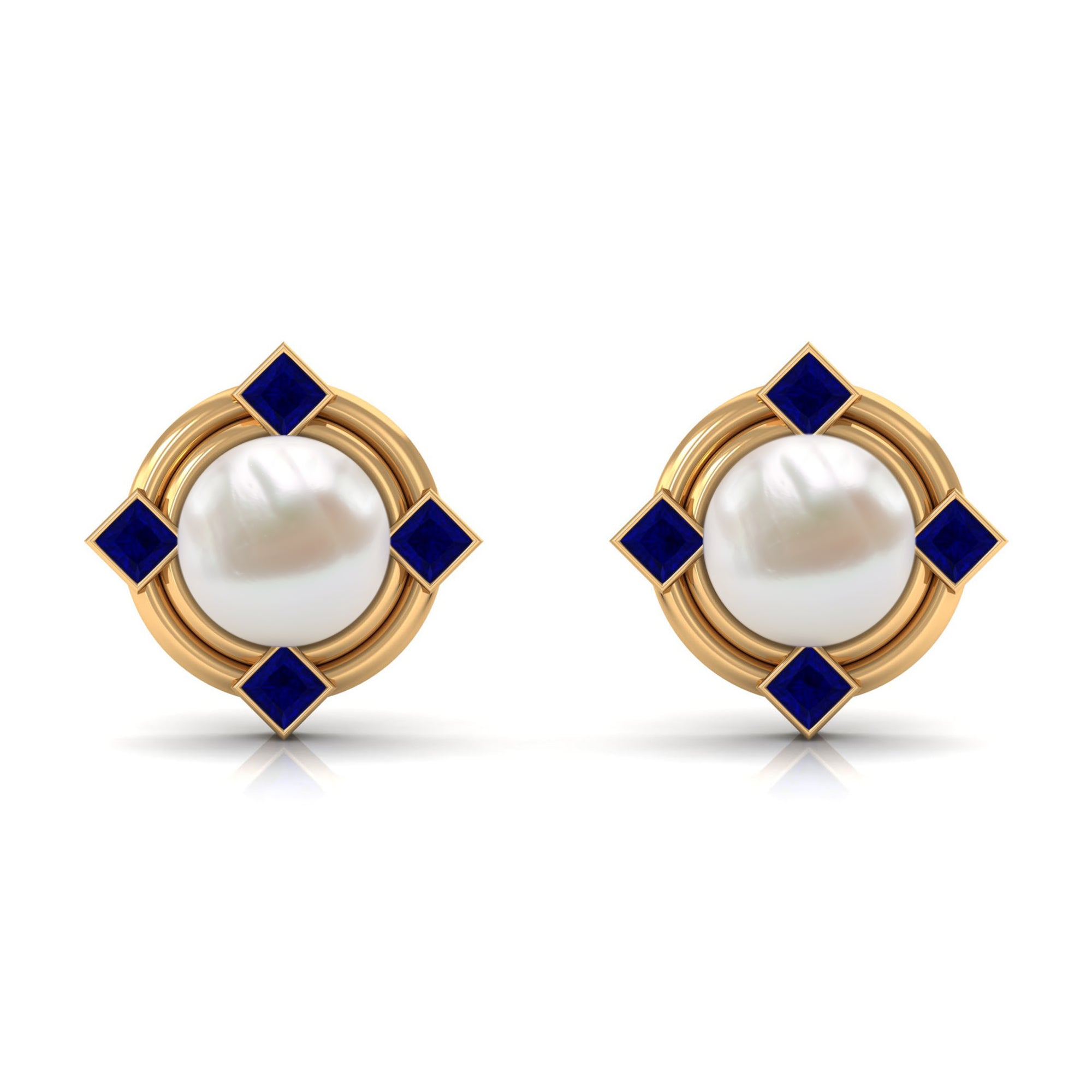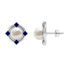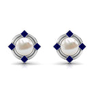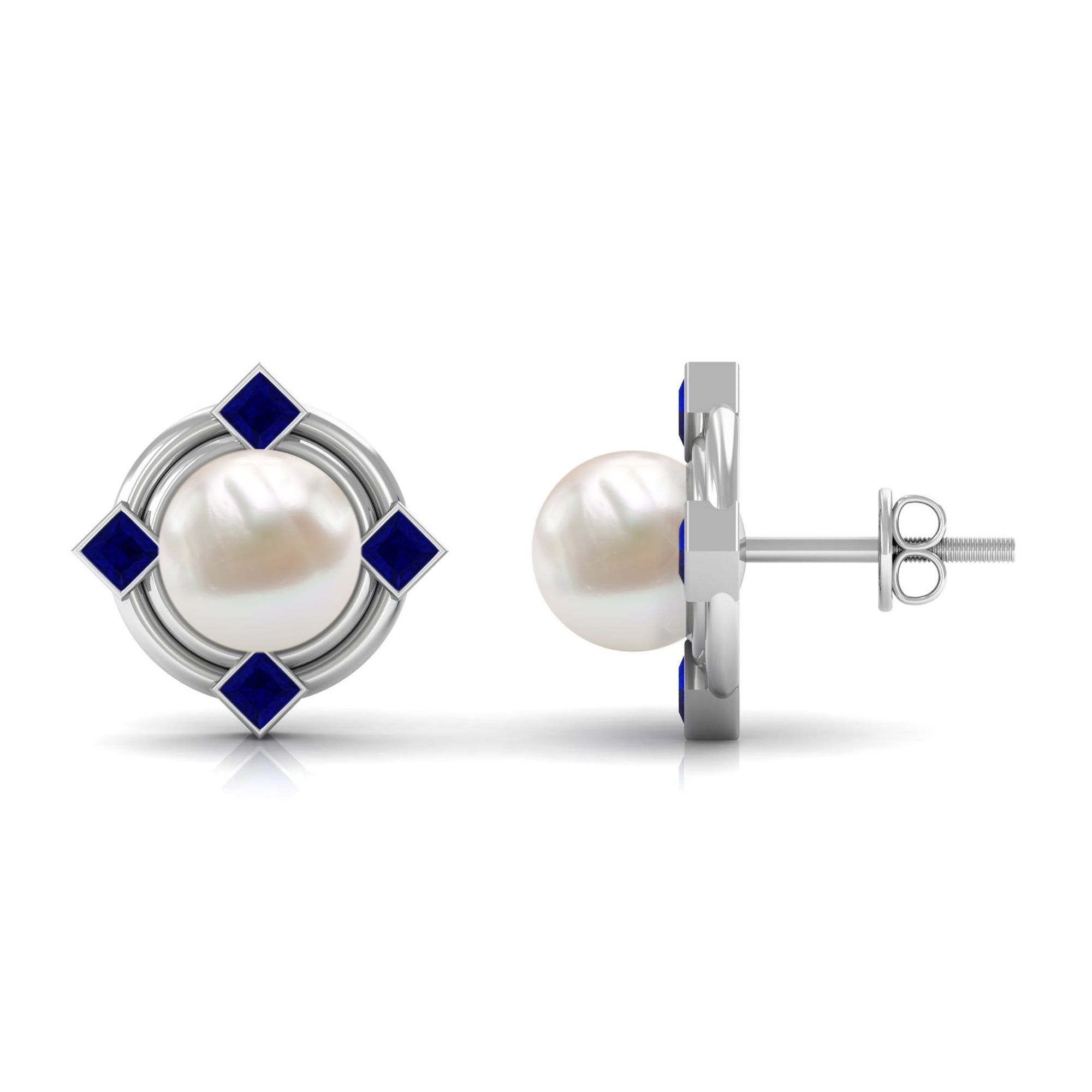 6.50 CT Modern Stud Earrings with Freshwater Pearl and Blue Sapphire