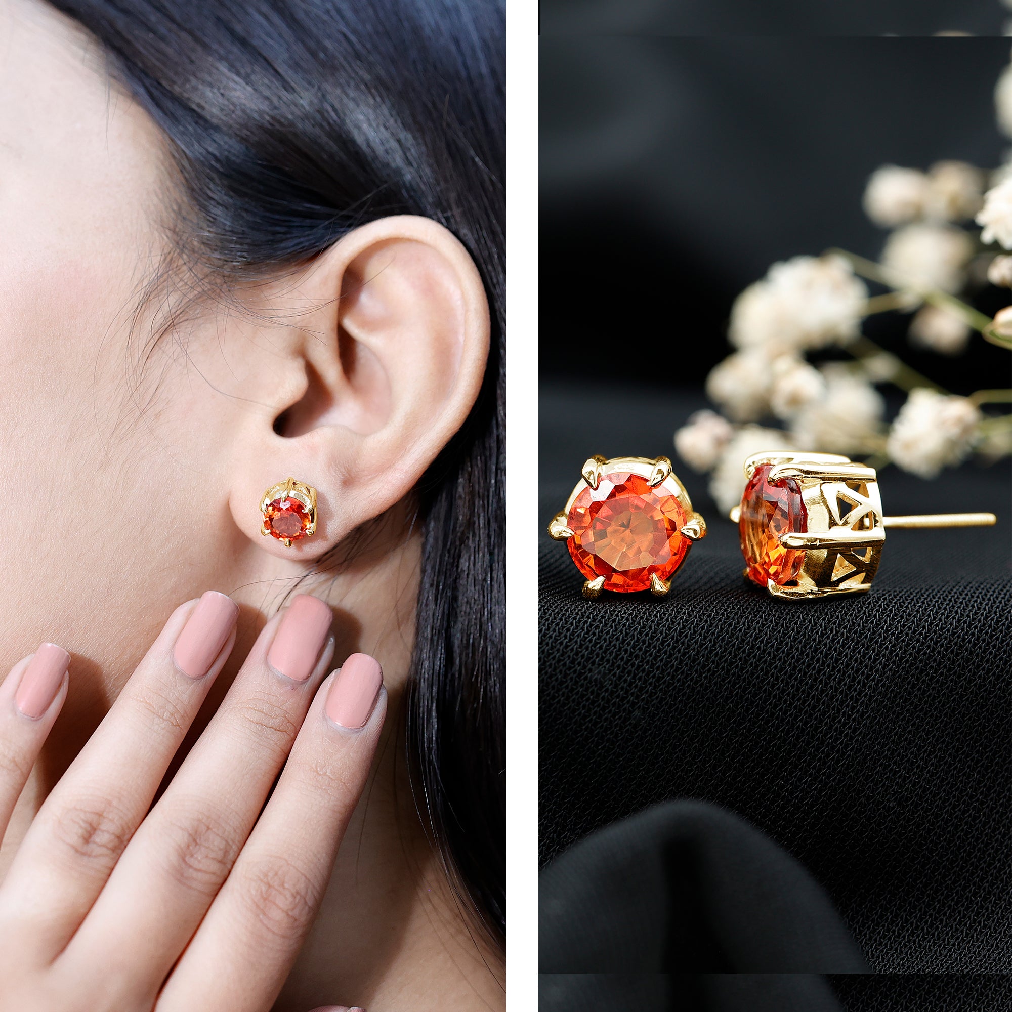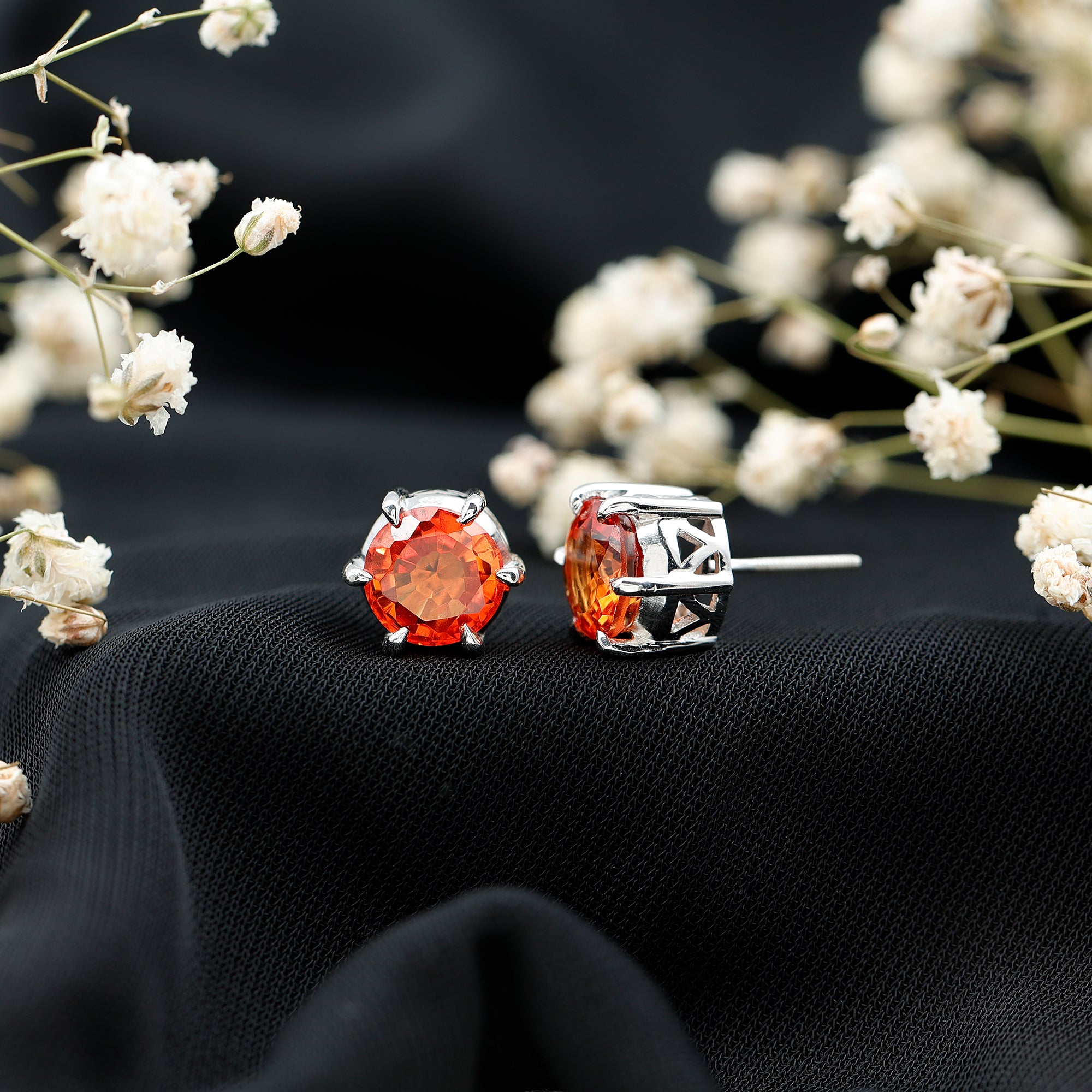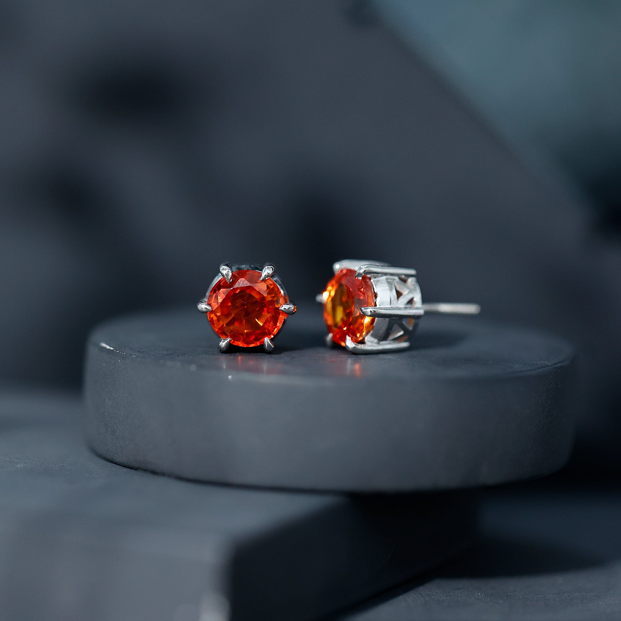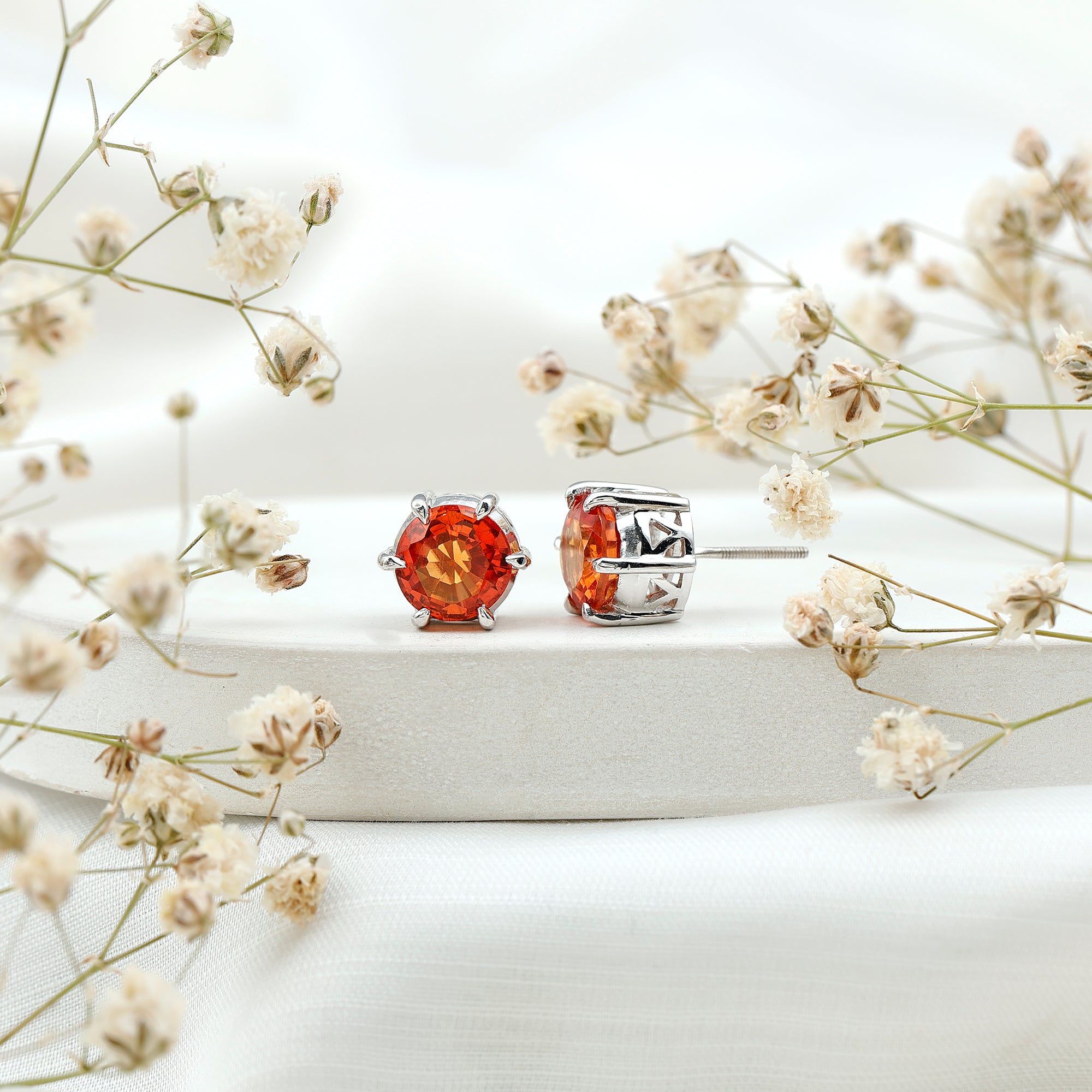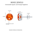 6 Claw Set Round Created Orange Sapphire Solitaire Stud Earrings